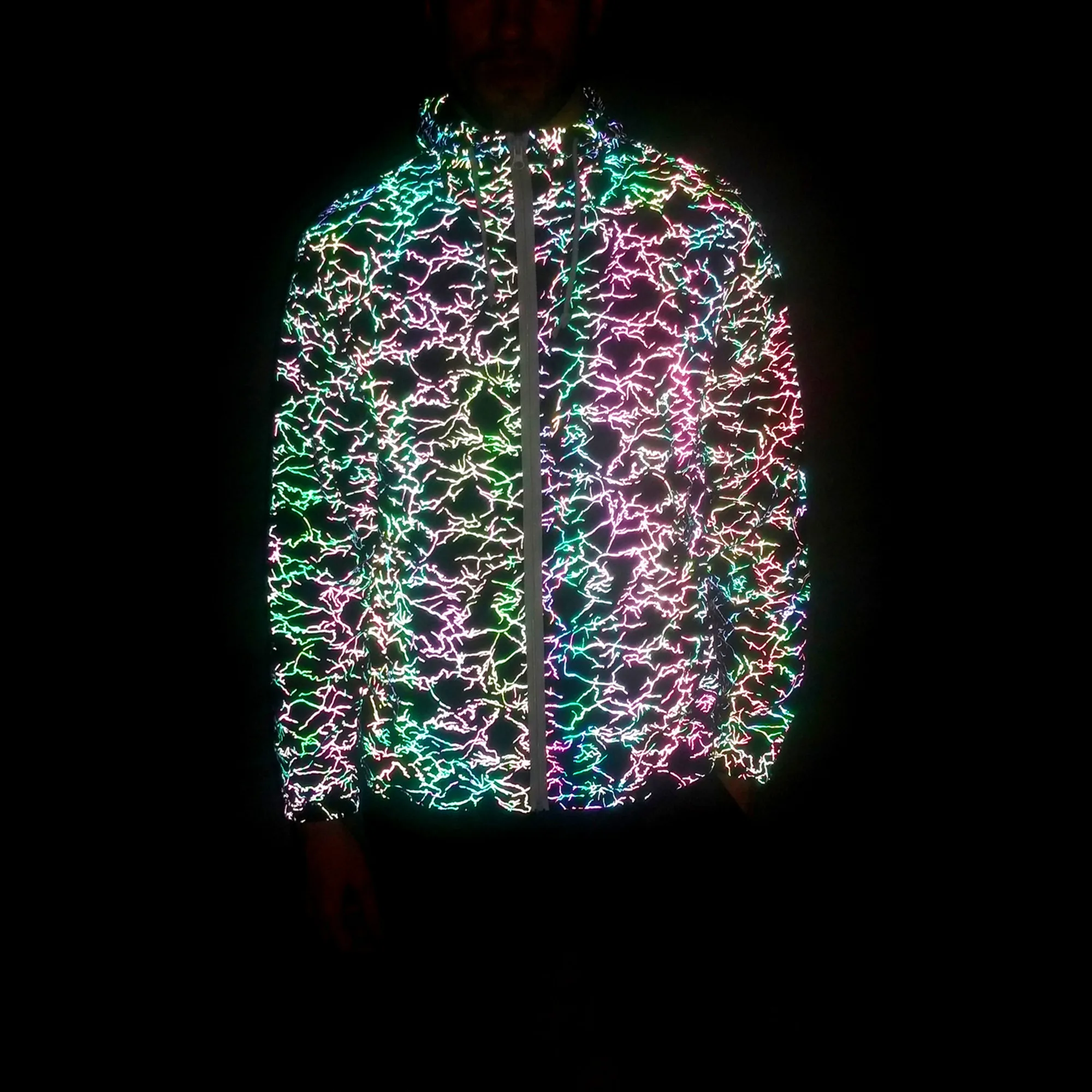 Long Sleeve Unisex Holographic Reflective "Circuit Pattern" Sun Protection Jacket Reflective Rave Outerwear Track Zipper Jacket