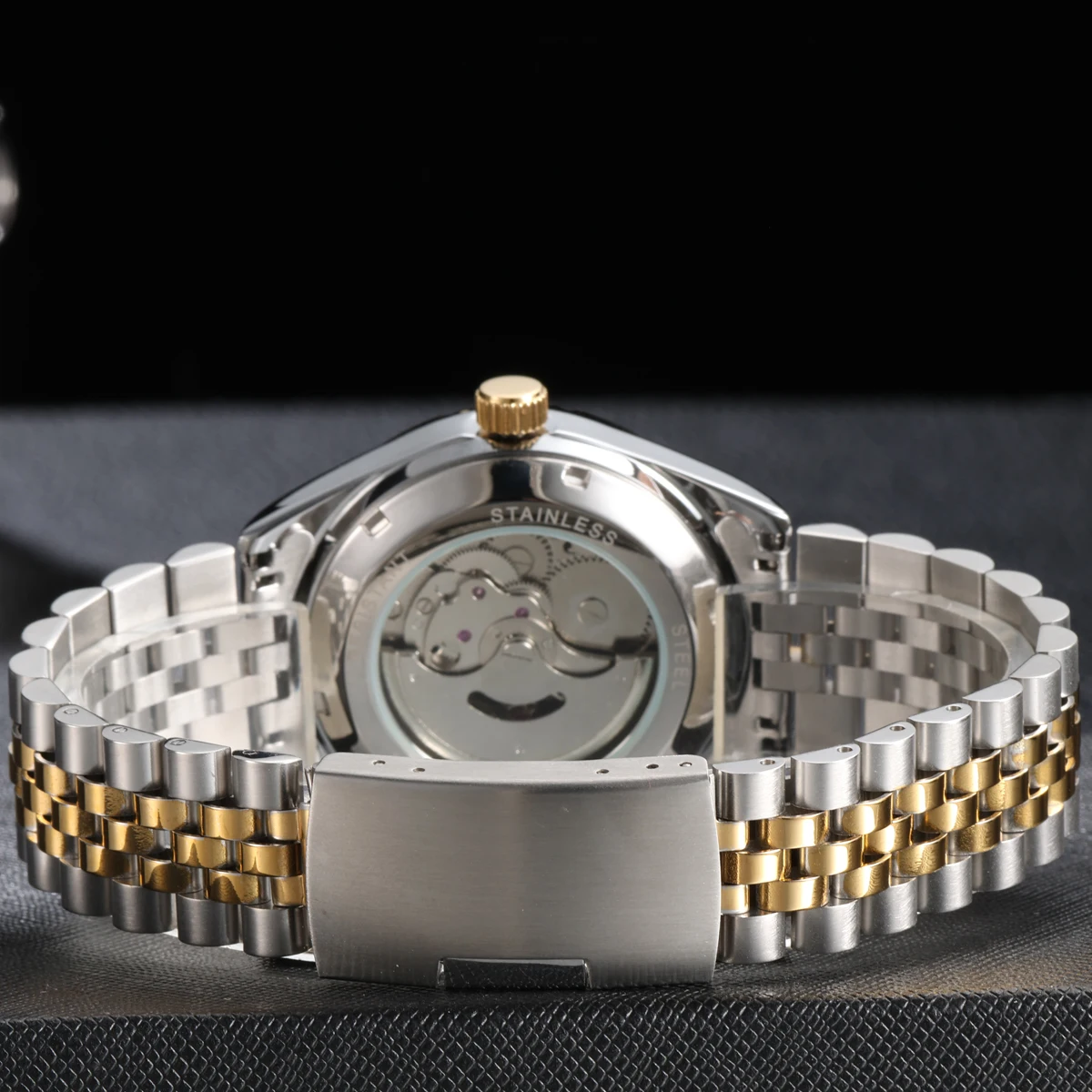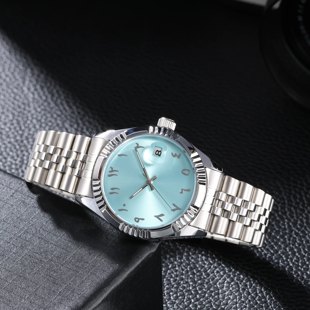Mechanical Watch Arabic Numerals Baby Blue Waterproof Stainless Steel Watch Strap