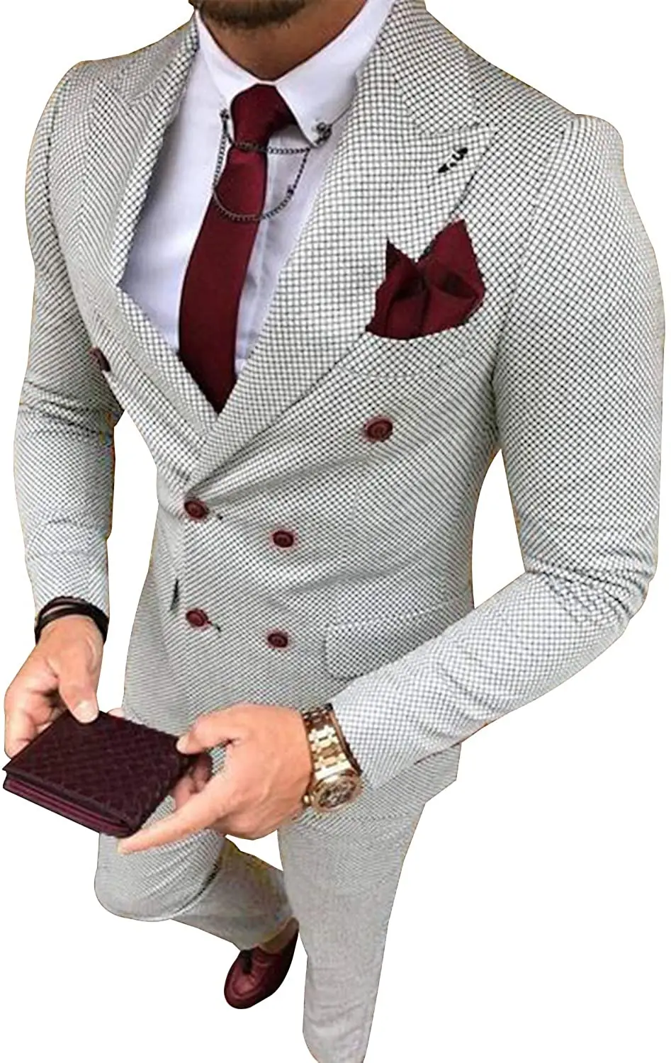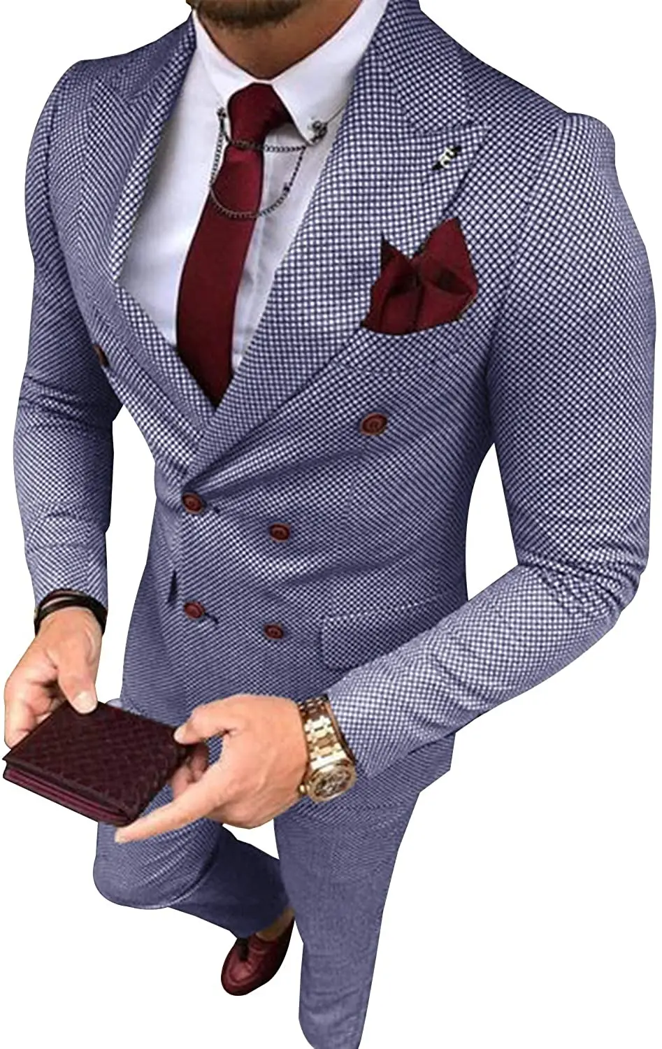 Men's Business Suits 2 Pieces Double Breasted Regular Fit Notch Lapel Plaid Wool Prom Tuxedos For Wedding (Blazer+Pants)