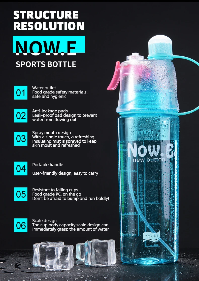 【Unique spray design】: Do you still feel dry skin in the hot summer, unique spray function, you can spray a refreshing spray with just one tap to keep your skin moisturized and give you a refreshing moment in the summer. Water bottle with measurements designed for sportsmen, it is the best companion for sports.