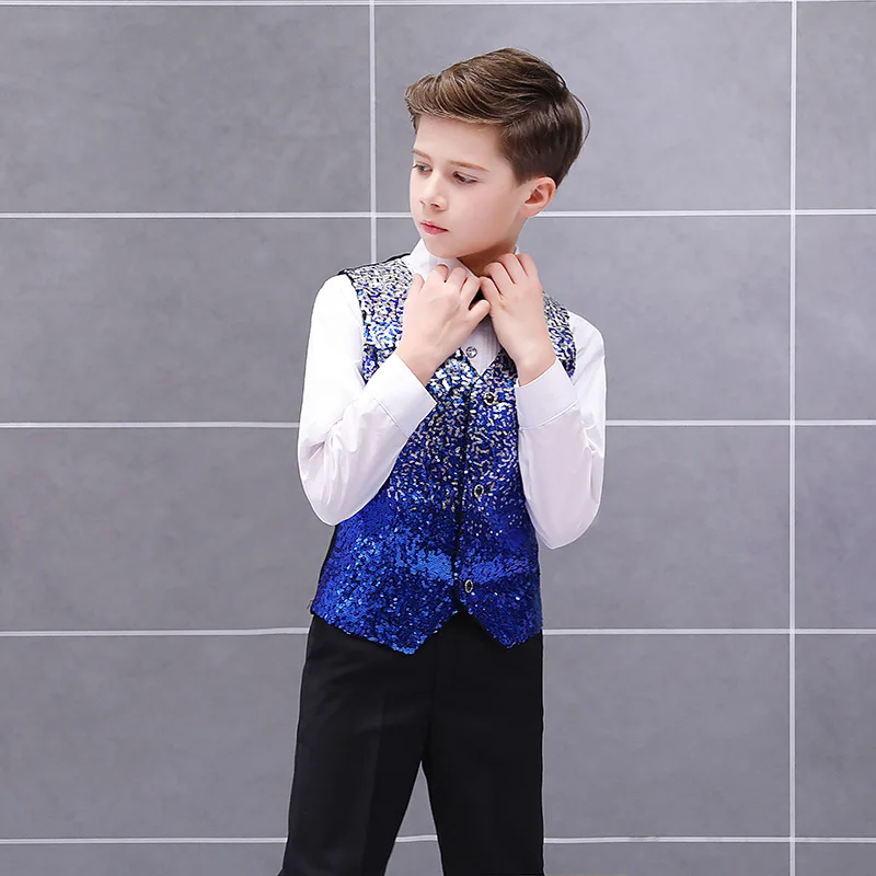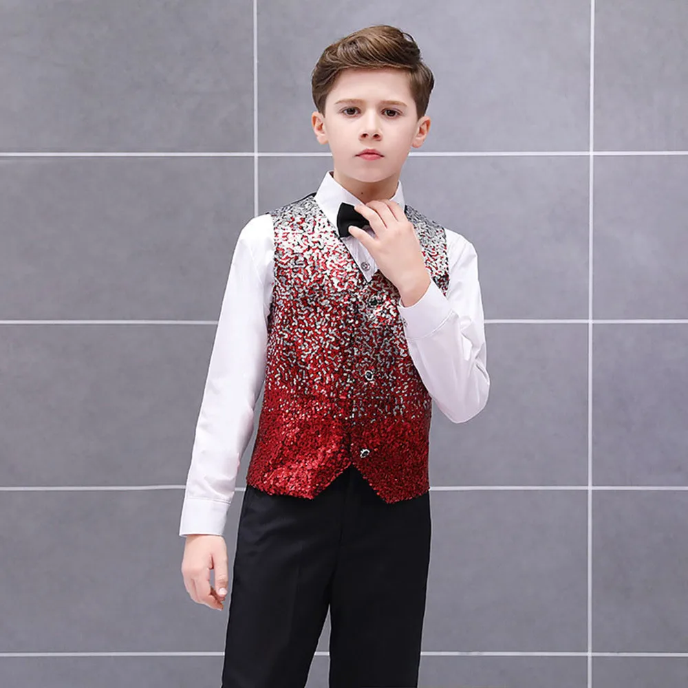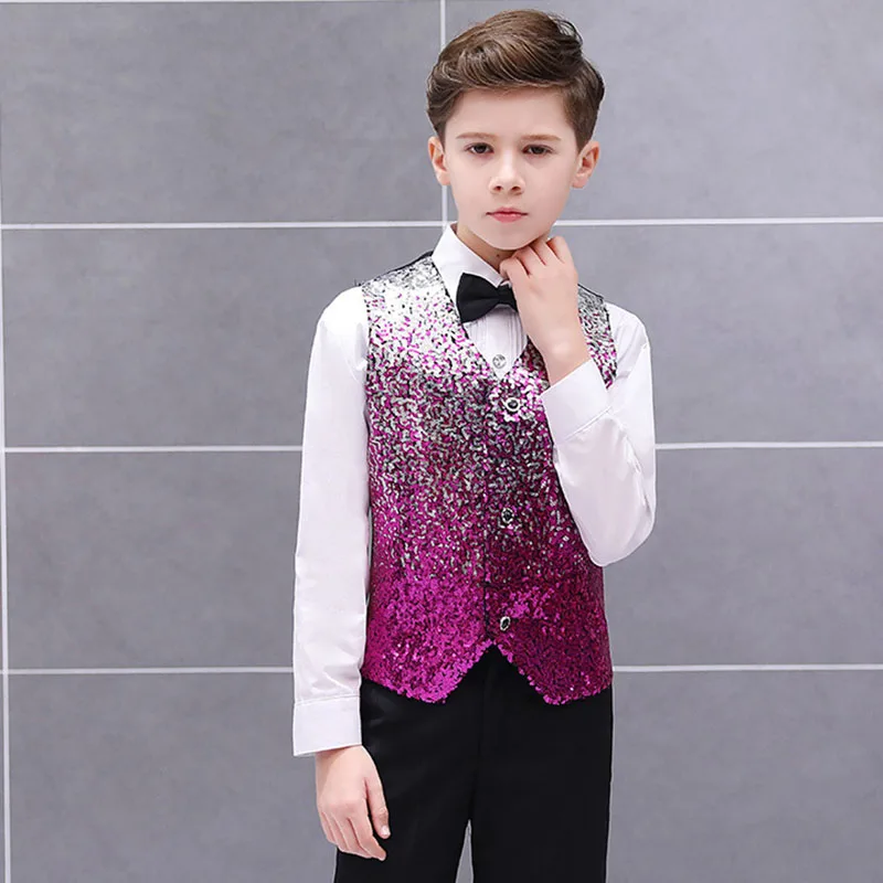 New Arrival Boy's Vest Changing Color Fashion Shiny Sequin Suit Vest For Wedding Party For Boy