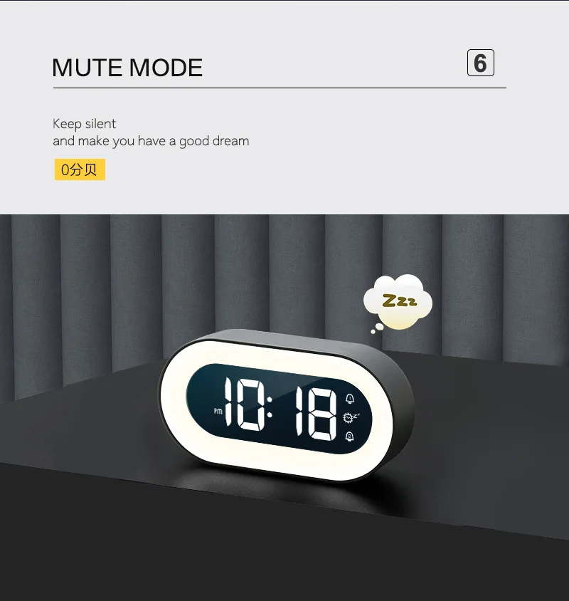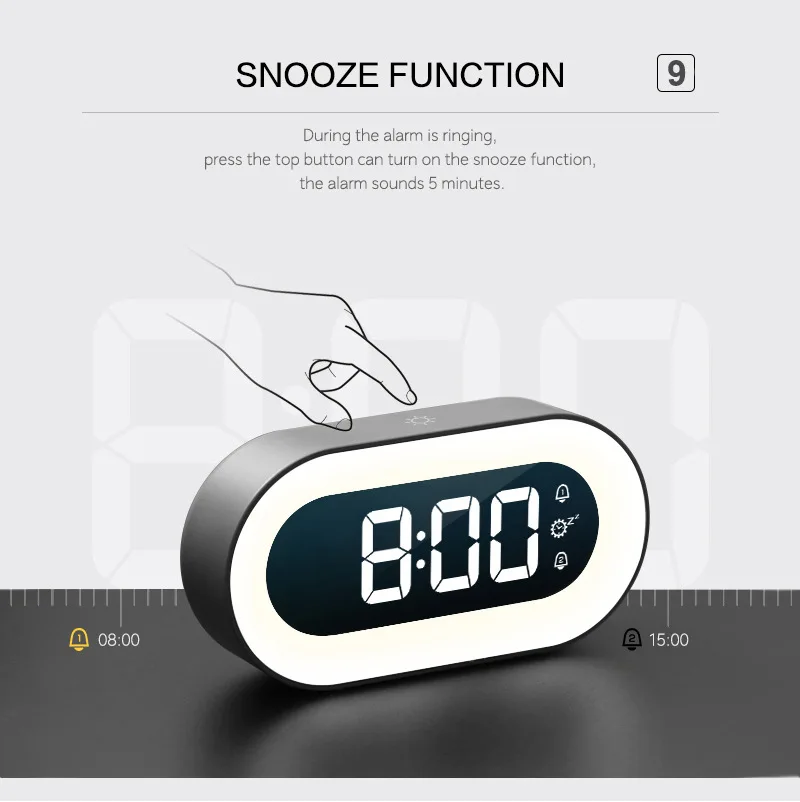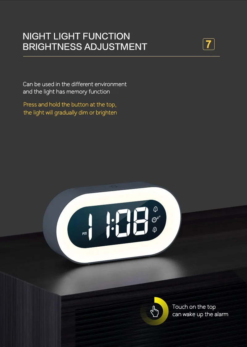 9. Touch snooze. When the alarm sounds, you can touch the top to snooze, the snooze time is 5 minutes