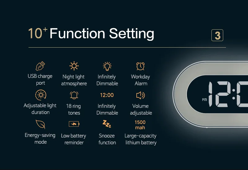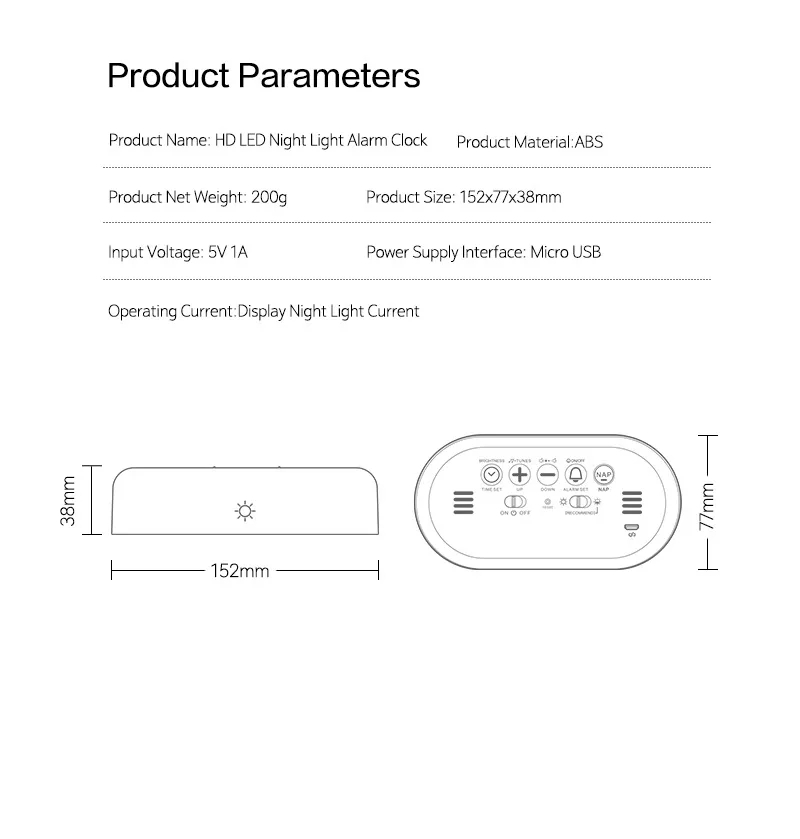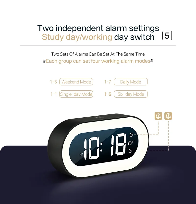 6. Support workday alarm clock and weekend alarm clock settings. Free choice of 4 modes (1-1, 1-5, 1-6, 1-7)
