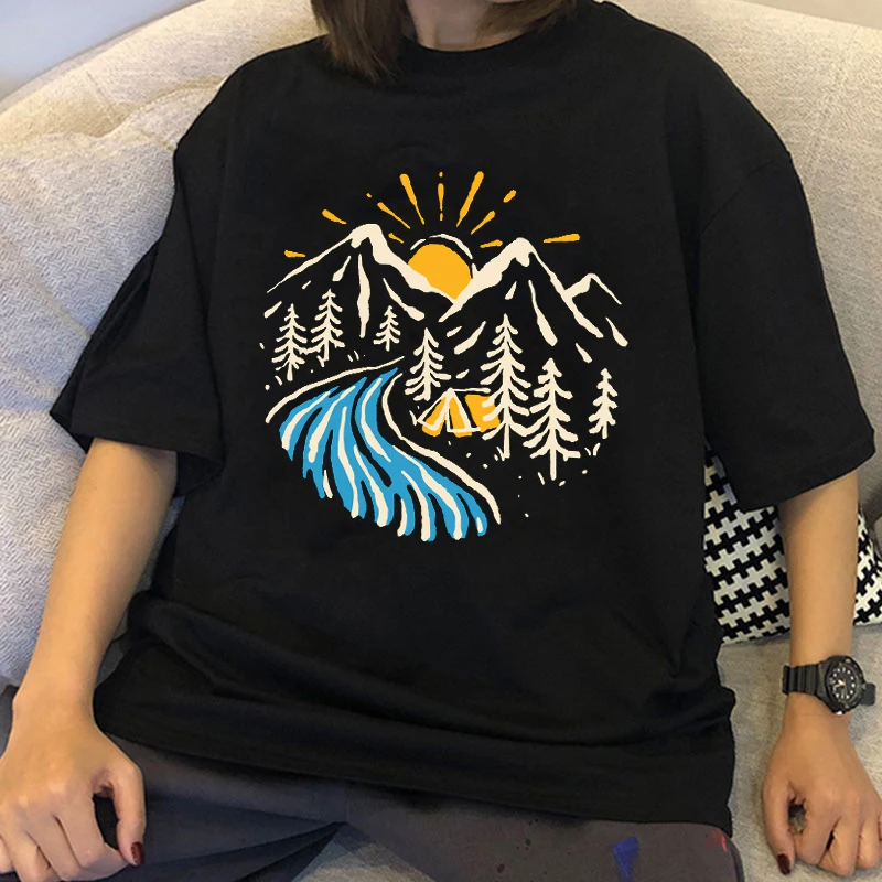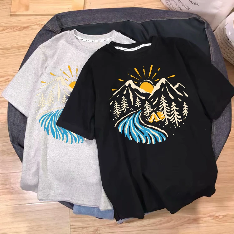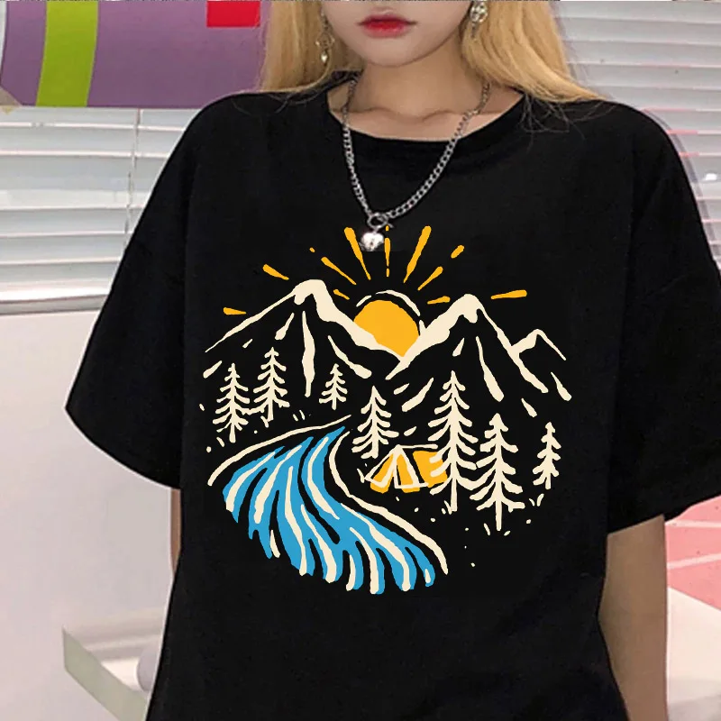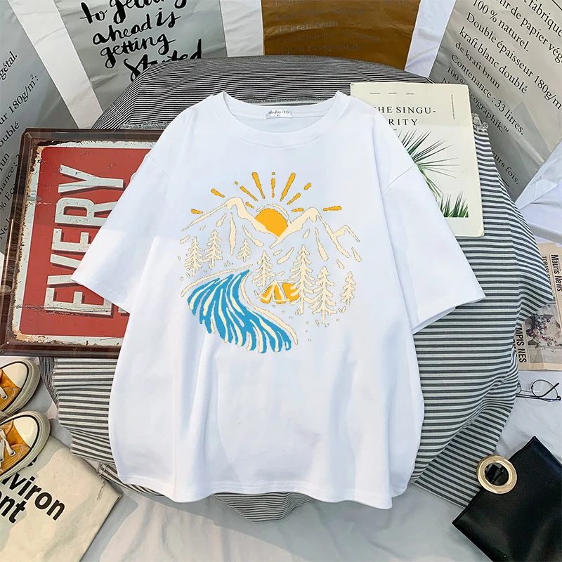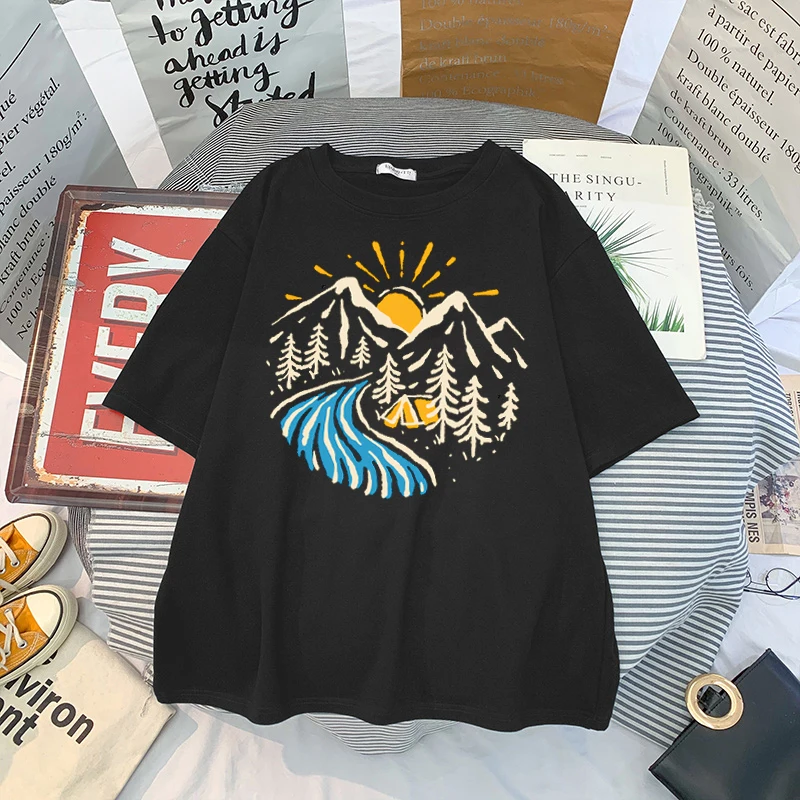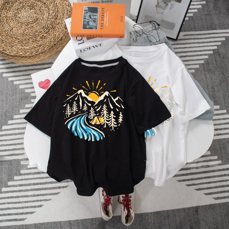 Oversized T-shirt Harajuku Tee Shirt Loose 90s Ulzzang Streetwear Tops Men Women T-shirt Mountains Graphic Print Short Sleeve