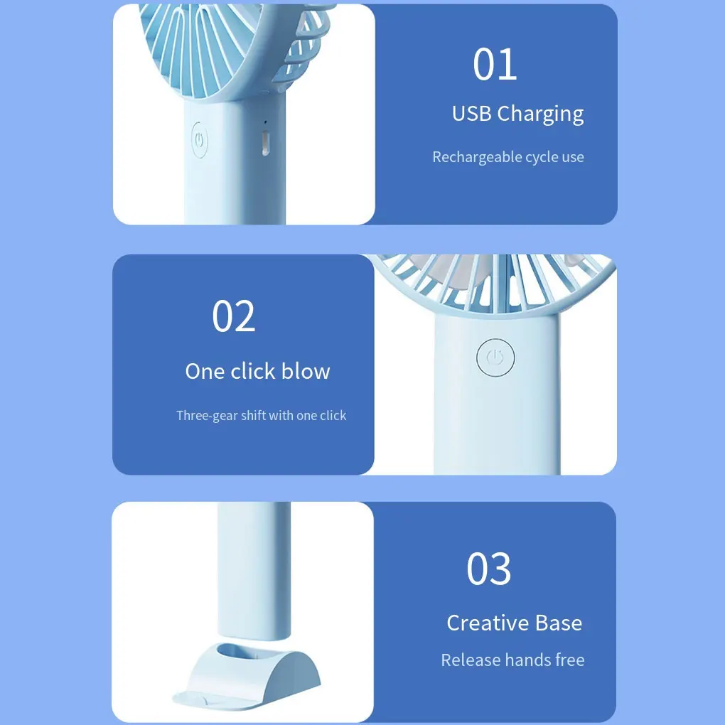 With A Base For Handheld Desktop Two In One Small Fan: This charging portable fan includes a base for versatile use as a handheld or desktop fan, making it a convenient choice for any situation