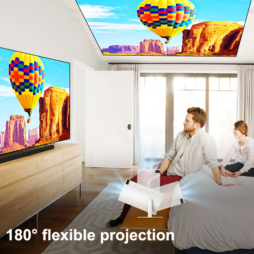 Turn any surface into a cinematic canvas! Our projector seamlessly rotates to project onto walls, ceilings, or even the floor. Enjoy an immersive viewing experience from any angle within your home.With a net weight of just 0.8KG, small but not simple, instantly project your movie further onto the ceiling. Take it anywhere, and savor high-quality visuals, whether you're indoors or enjoying an outdoor movie night.