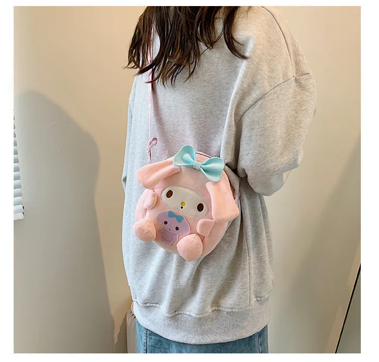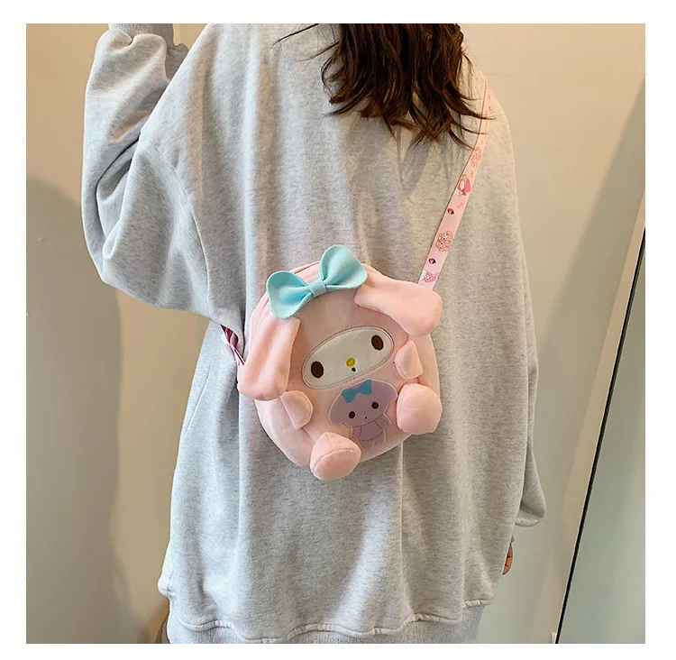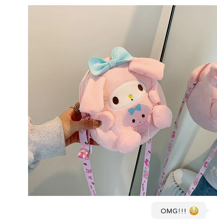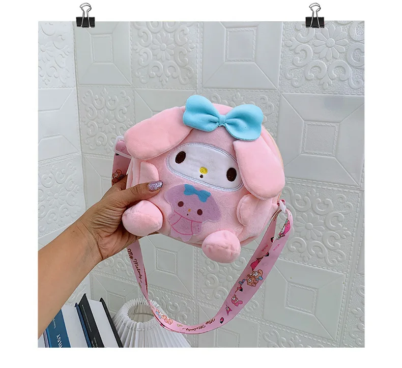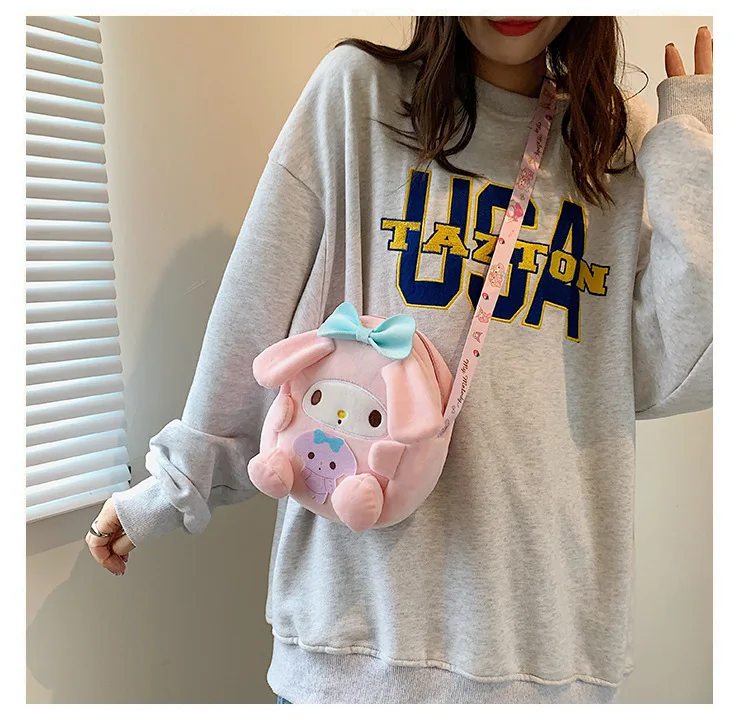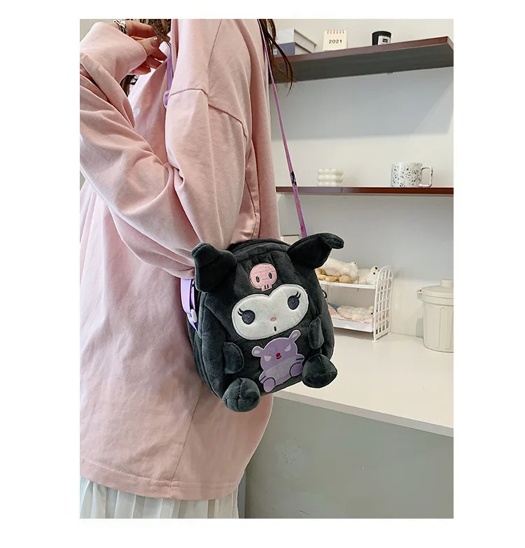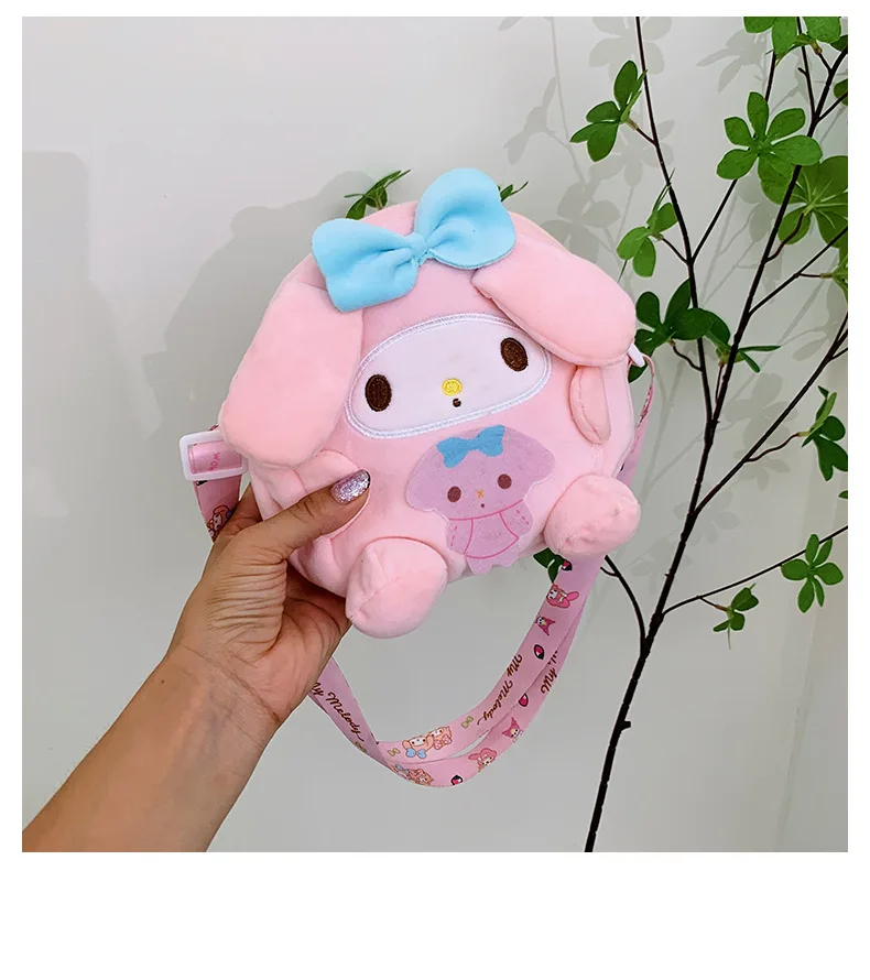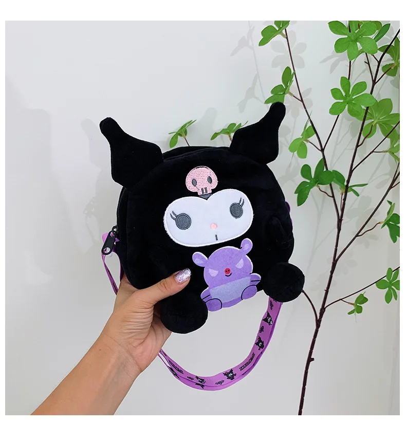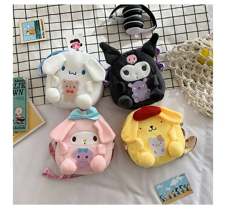 Sanrio Backpack Kuromi Bag Plush My Melody Shoulder Bag Cinnamoroll Crossbody Storage Makeup Pouch Girl Handbag Christmas Gift