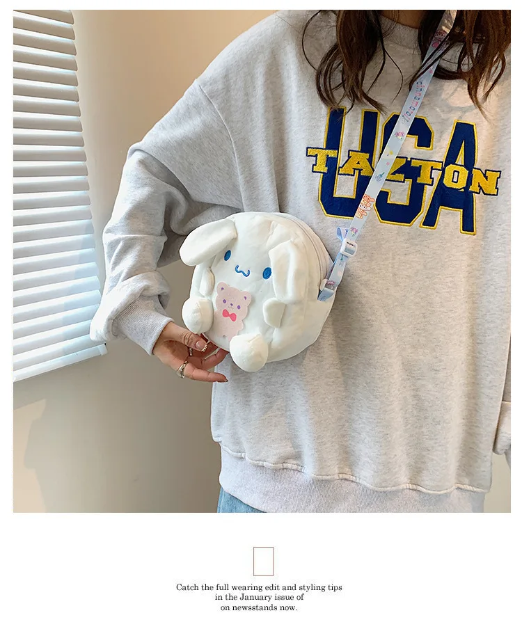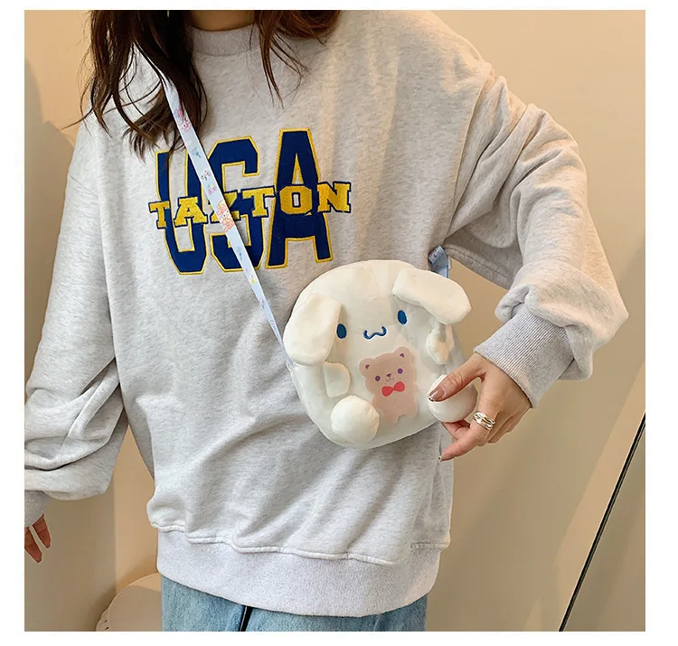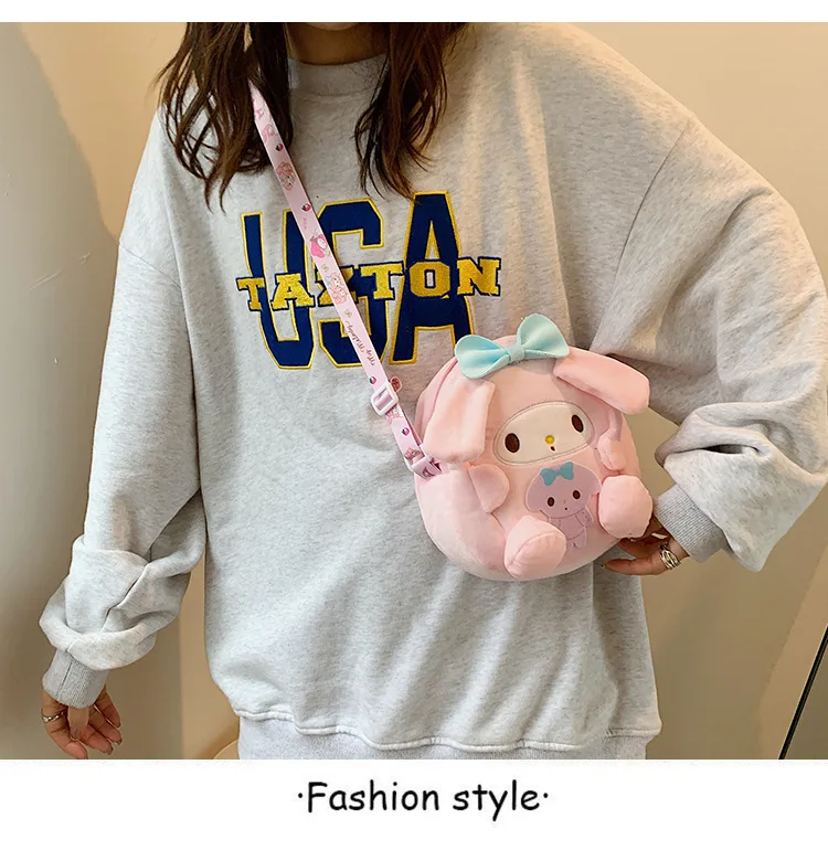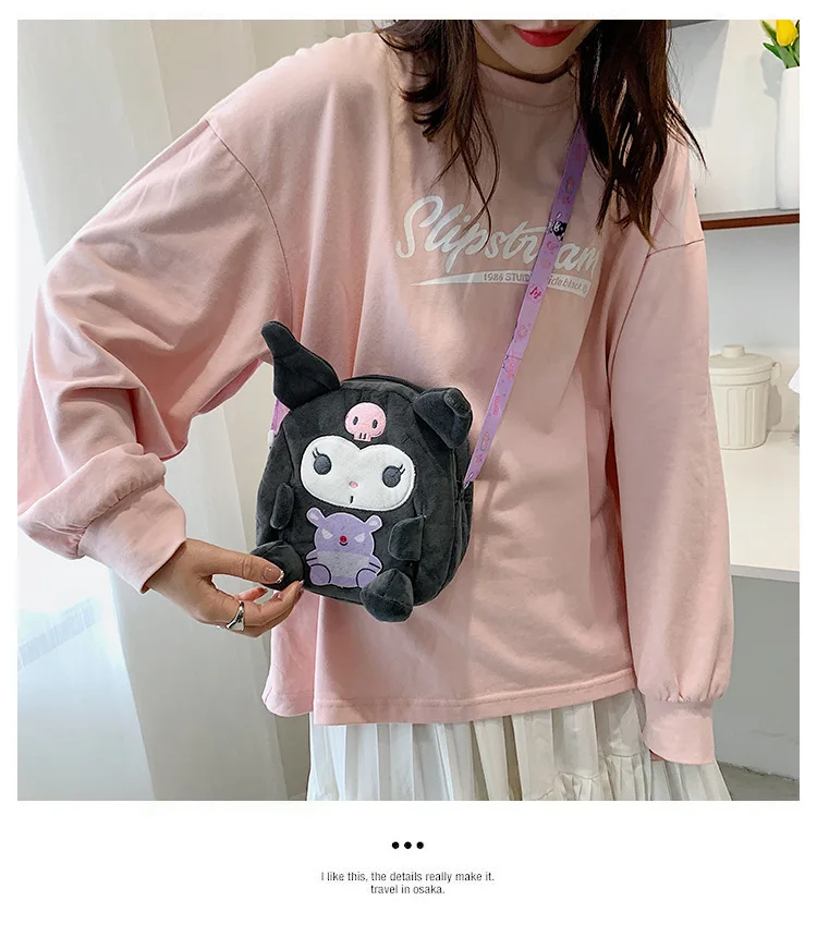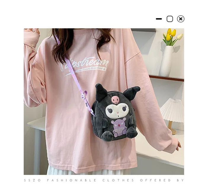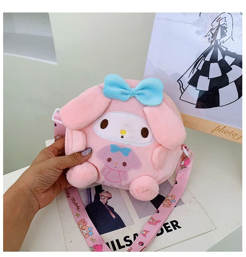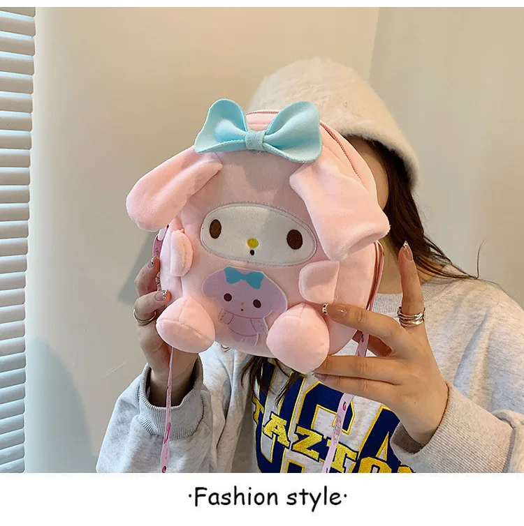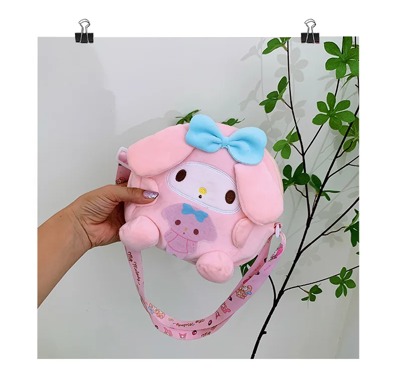 Sanrio Backpack Kuromi Bag Plush My Melody Shoulder Bag Cinnamoroll Crossbody Storage Makeup Pouch Girl Handbag Christmas Gift