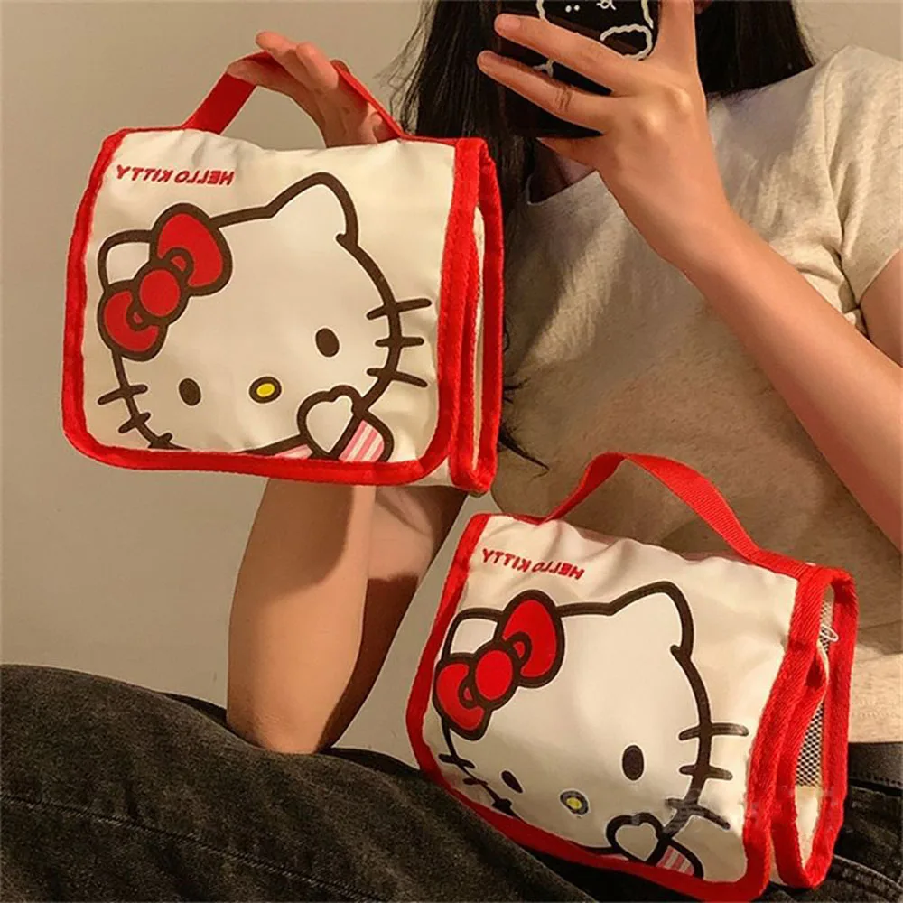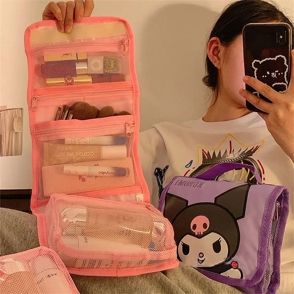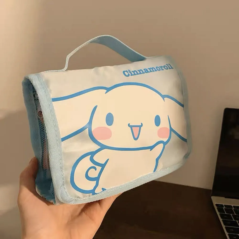 Sanrio Cosmetic Bags Hellokitty Foldable Storage Bags Portable Makeup Case for Traveling Cinnamorol Large-Capacity Tote Handbags