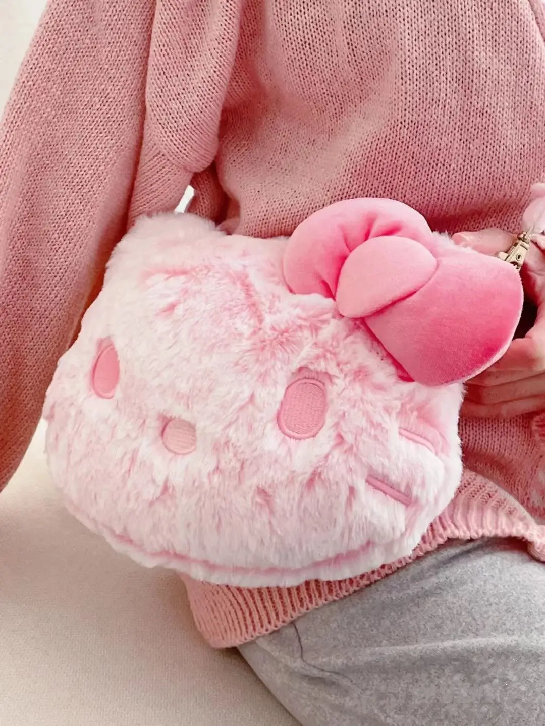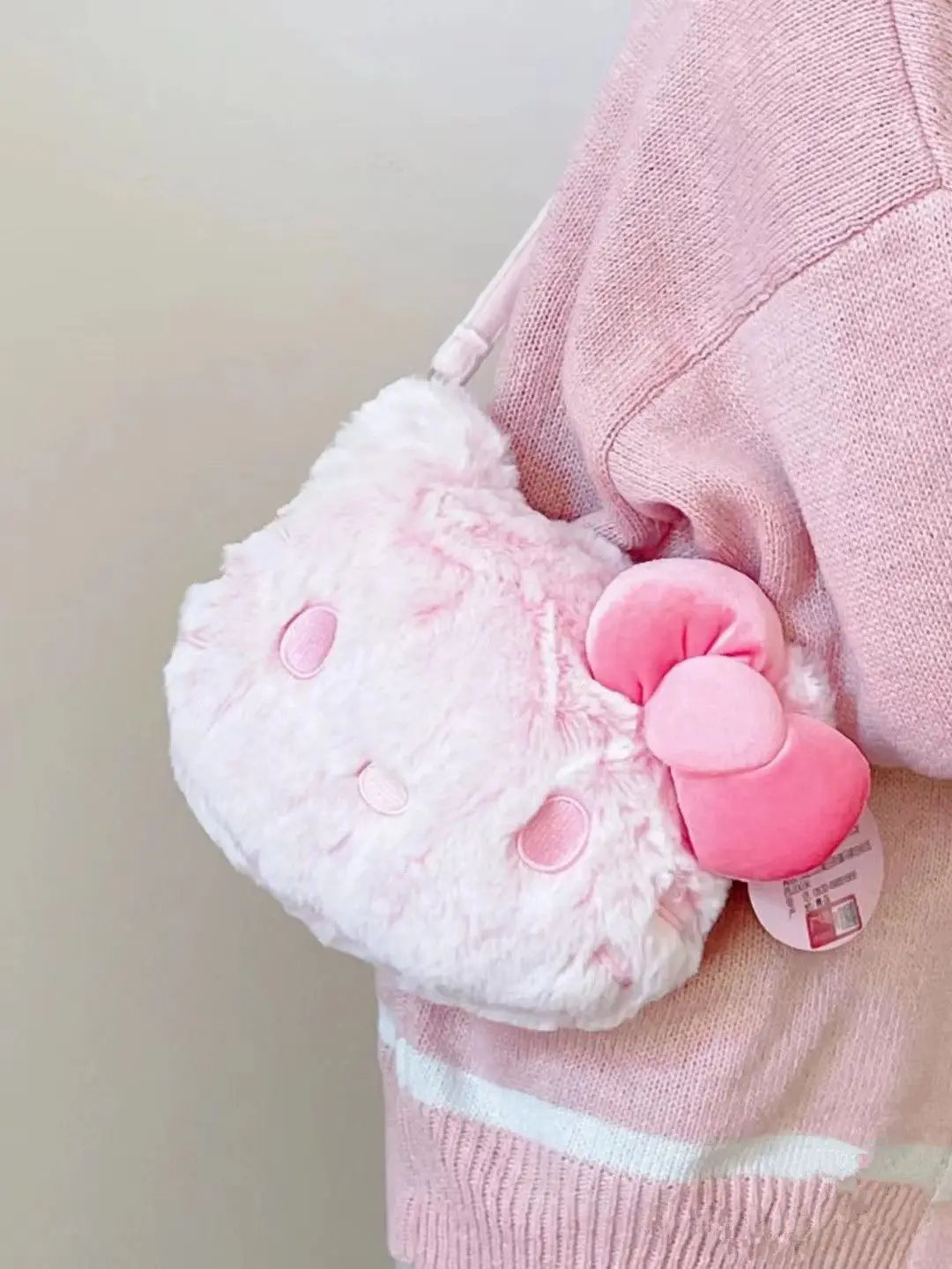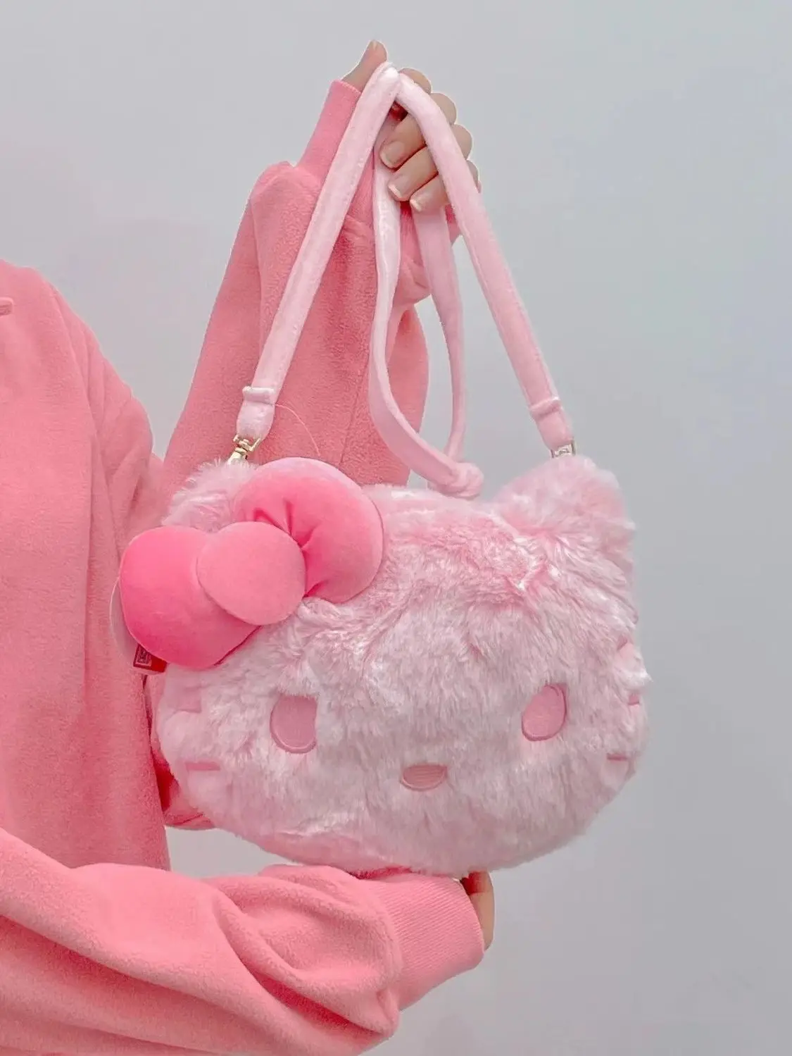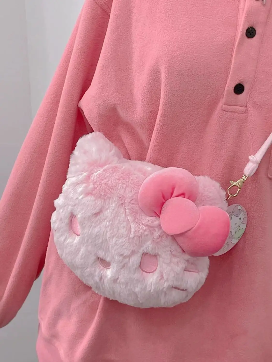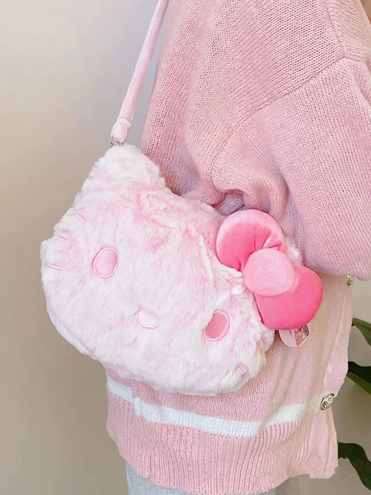 Sanrio Hello Kitty Kawaii Plush Shoulder Bag Female Messenger Bags Tote Fashion Shopping Winter Plush Birthday Gift for Girls