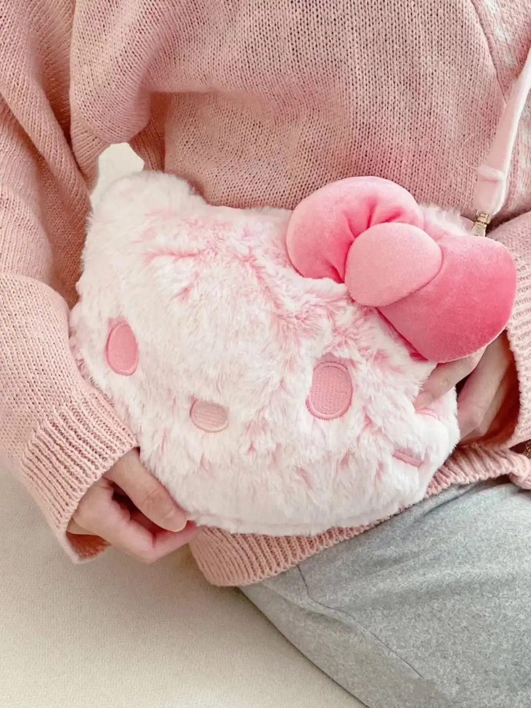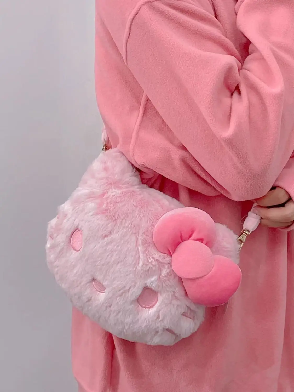 sanrio hello kitty kawaii plush shoulder bags pink bag female messenger bag winter plush cute shoulder bag birthday gift for girls