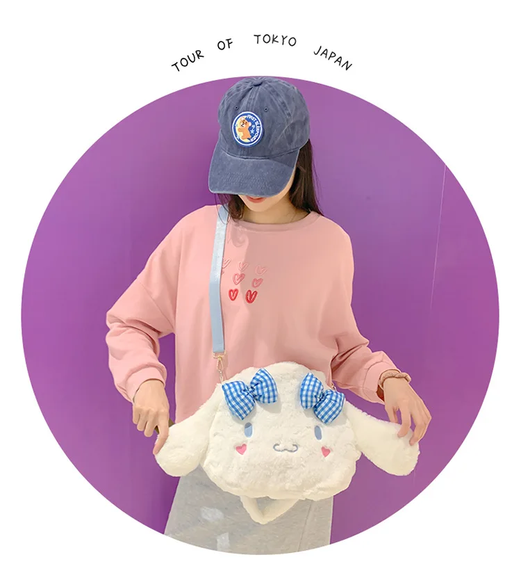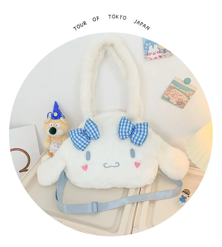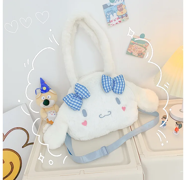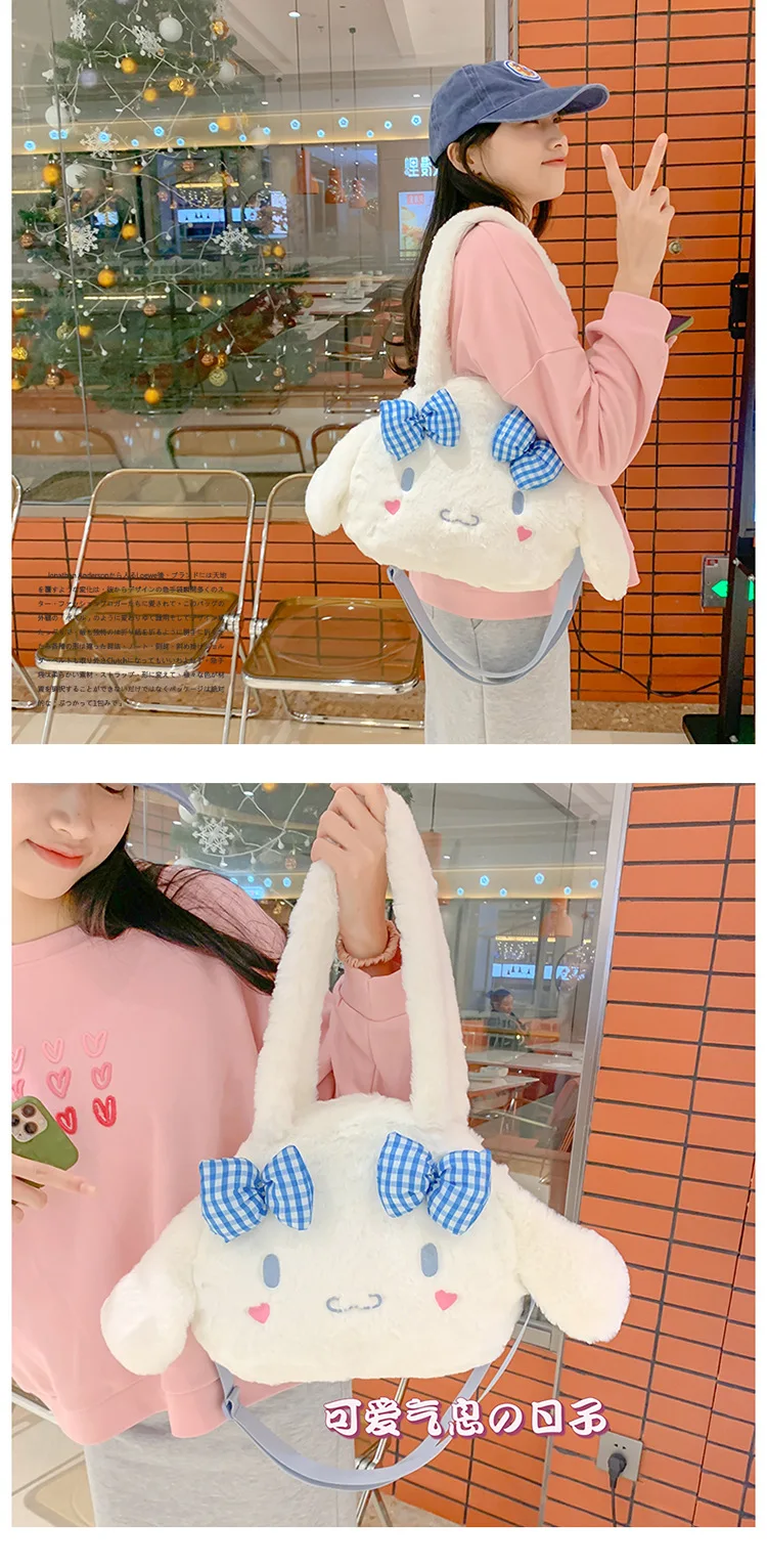 Sanrio Kawaii Messenger Bag Cinnamoroll Cute Plush Female Lolita Student Large-capacity Schoolbag Hand-held Shoulder Bag Gift