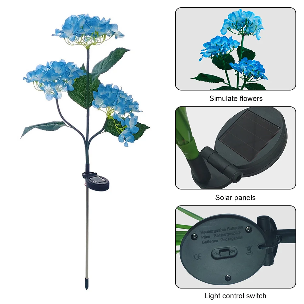 Solar Hydrangea Rose Flower Light Outdoor Garden Landscape Lamps for Lawn Yard Vegetable Patch Patio Country House Decoration