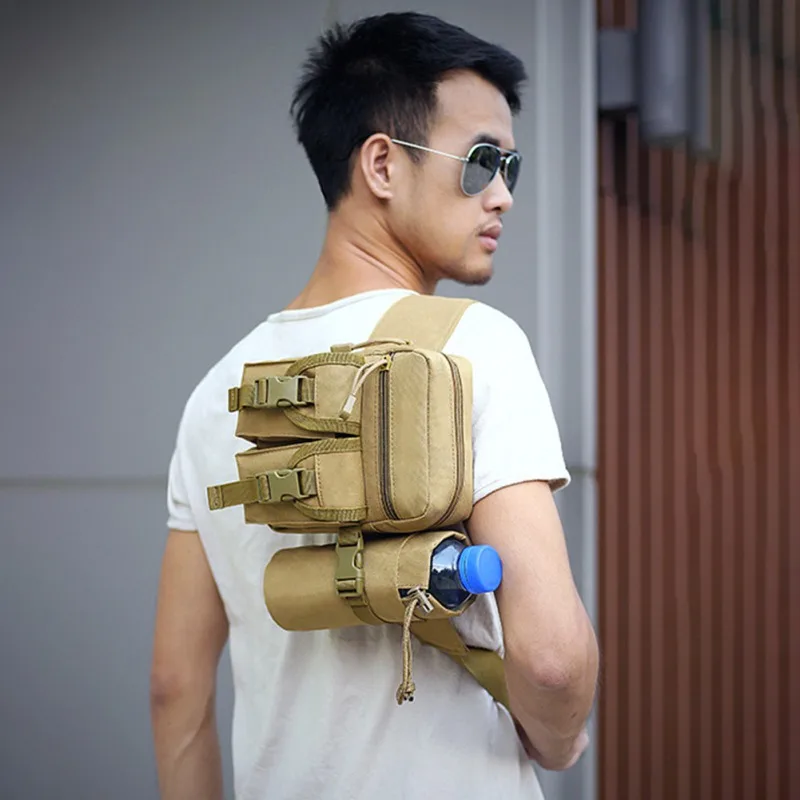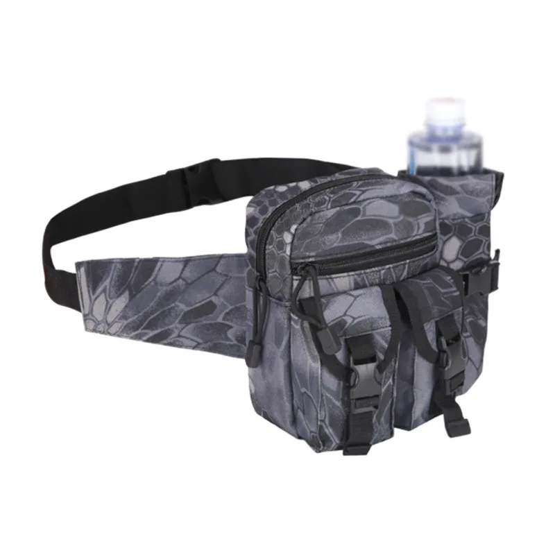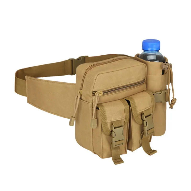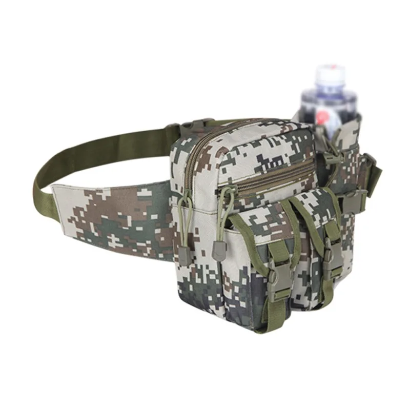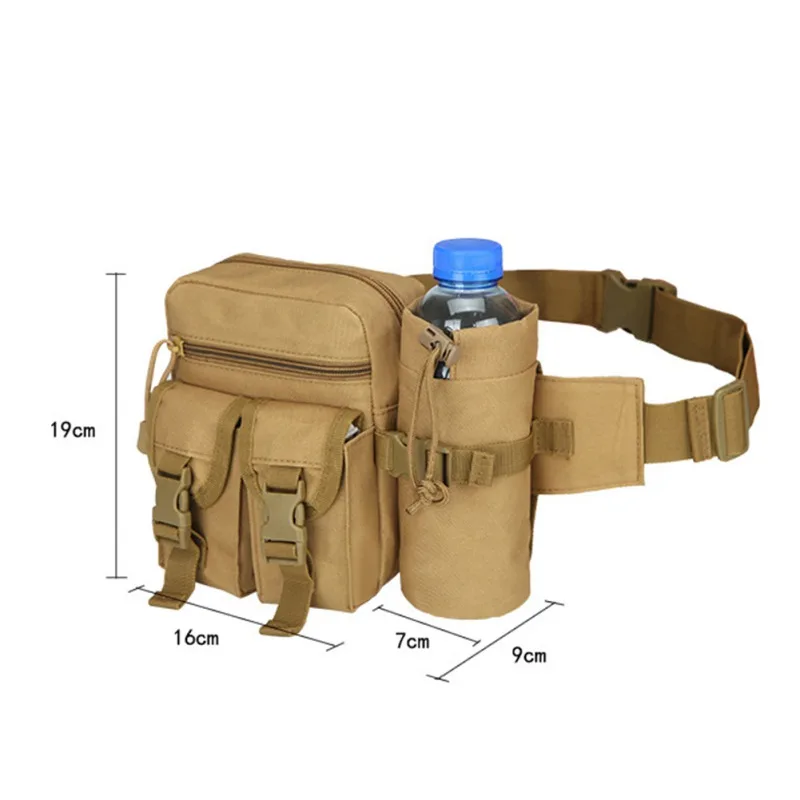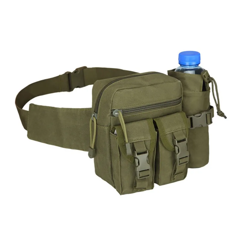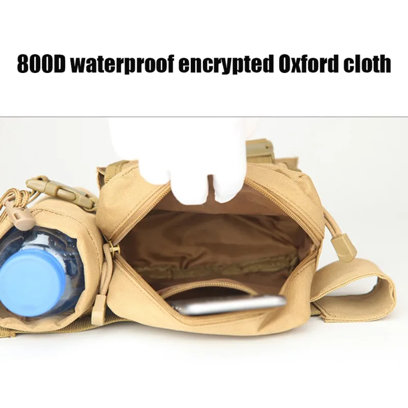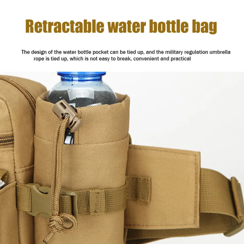 2. DETACHABLE BOTTLE POCKET: This tactical fanny pack comes with a detachable water bottle pocket, and the top drawstring opens for quick access. Small, compact, go-anywhere design. With the adjustable waist belt, the fanny pack can be easily adjusted to your comfort.
