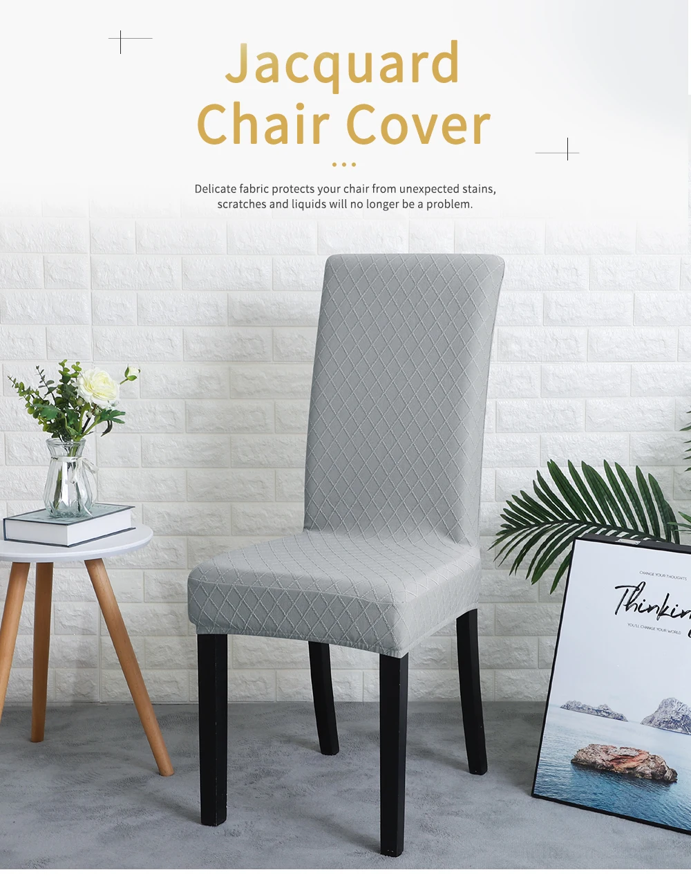 Stretch Jacquard Kitchen Chair Covers for Dining Room Washable Spandex Removable Seat Protector for Home