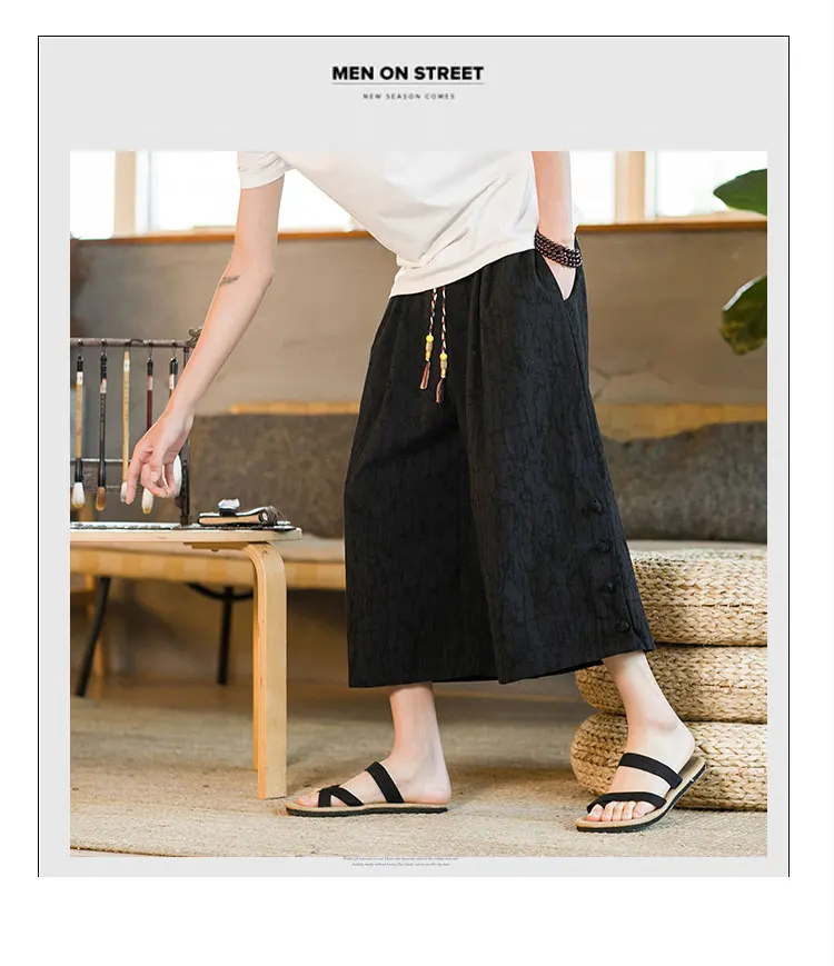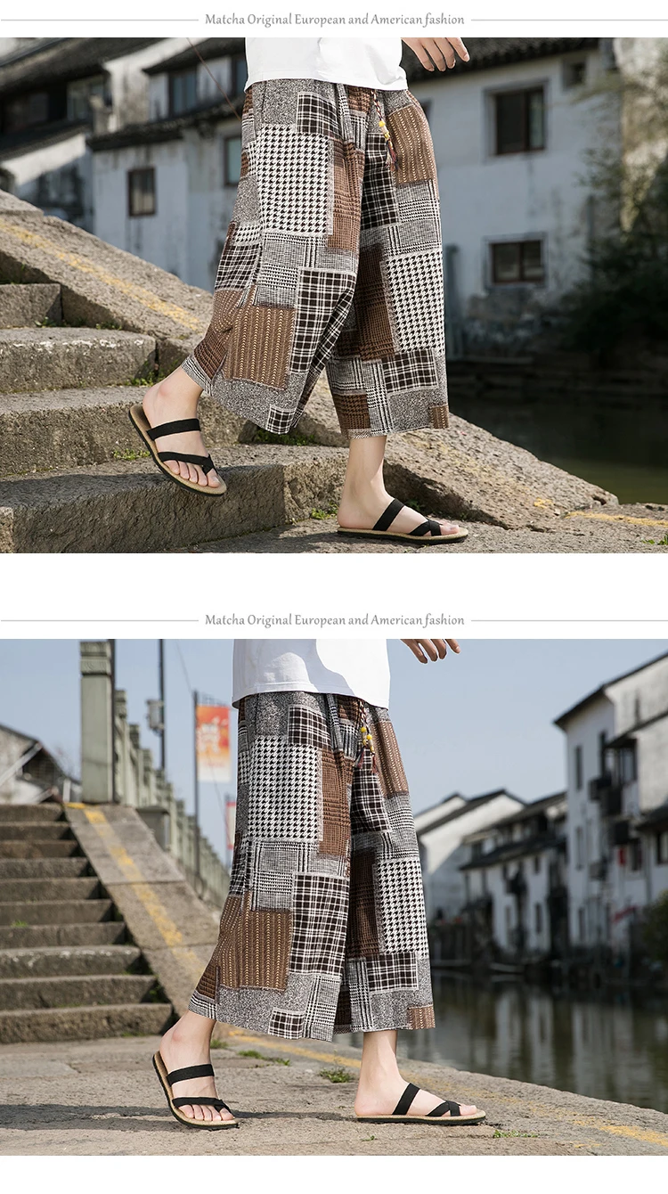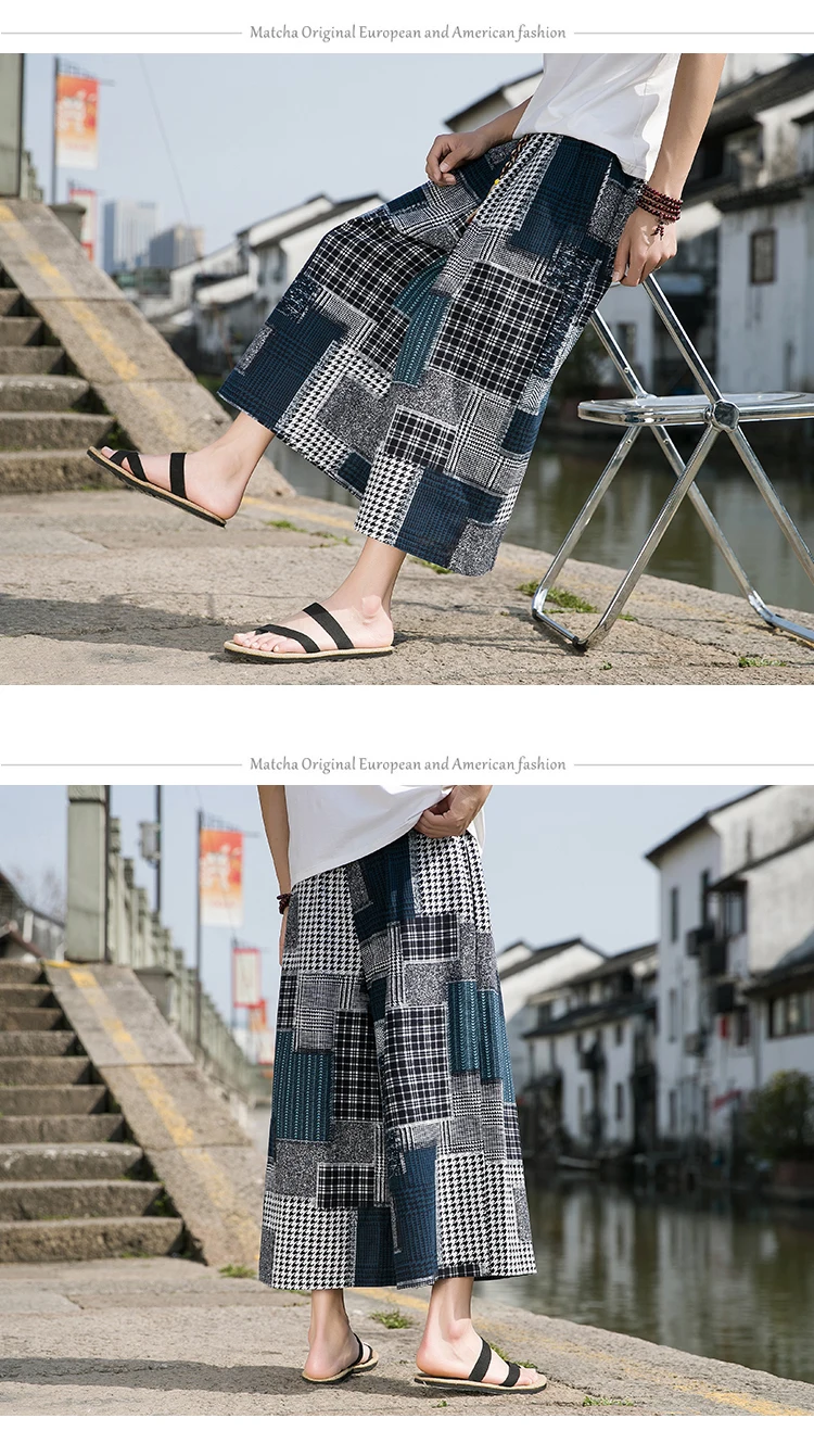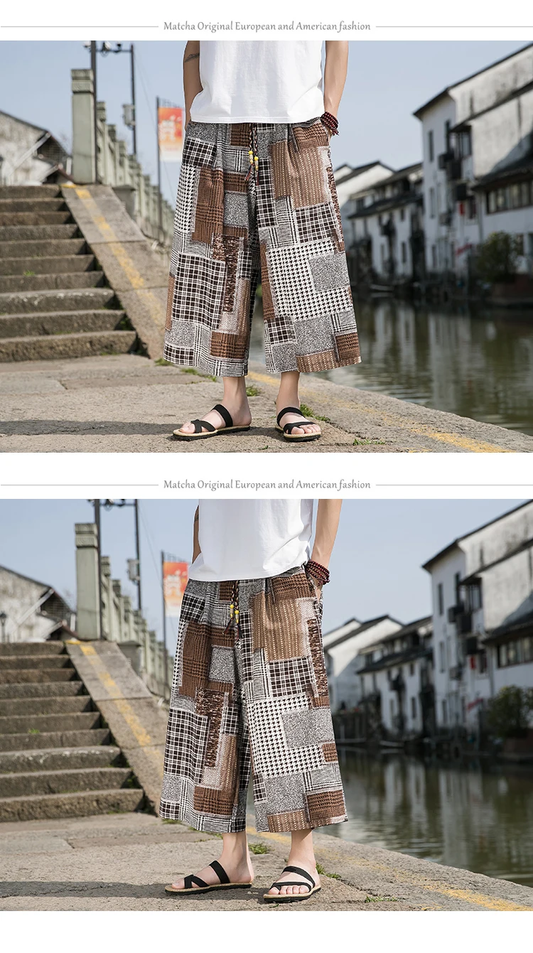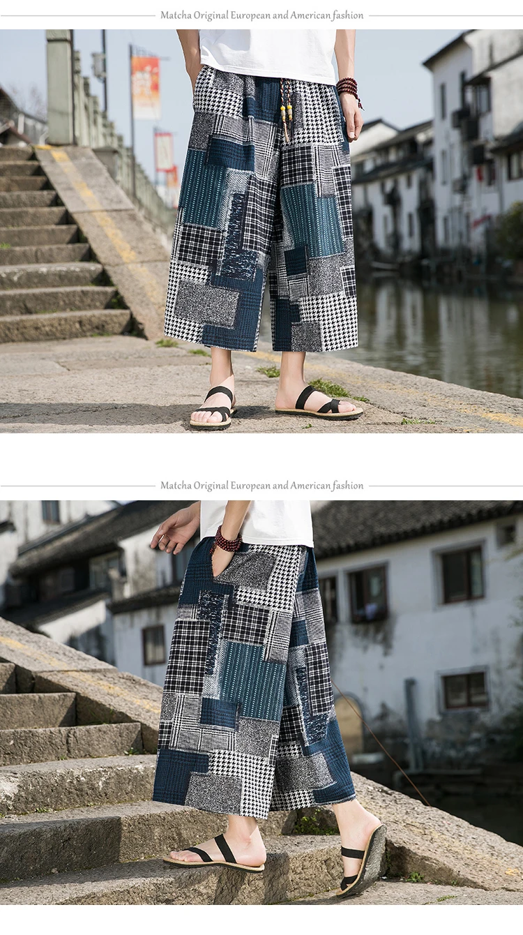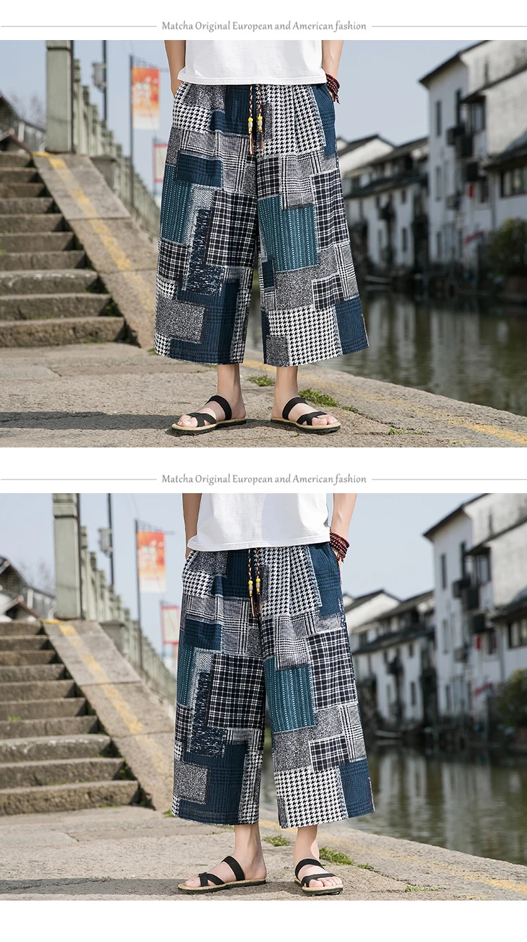 Summer Men's Harem Pants Japanese Samurai Jogging Plaid Trousers Men's Haori Loose Hip Hop Harajuku Casual Ethnic Wide Leg Pants