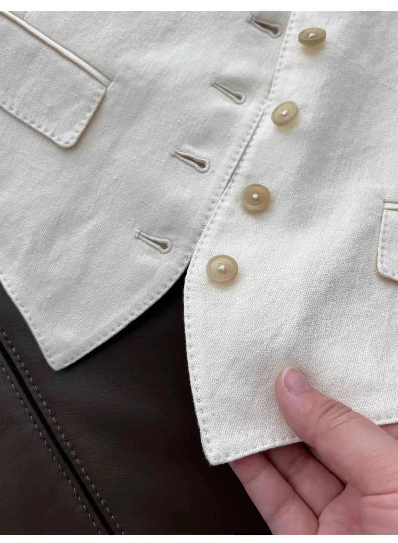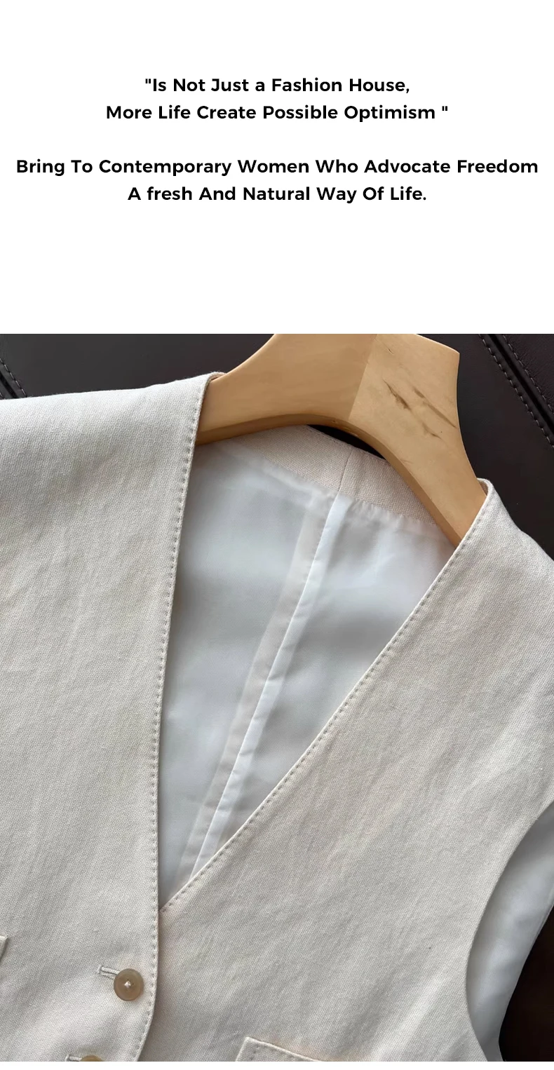 Summer Sleeveless Cotton Linen Suit Vest Wide Leg Pants Two-piece Set
