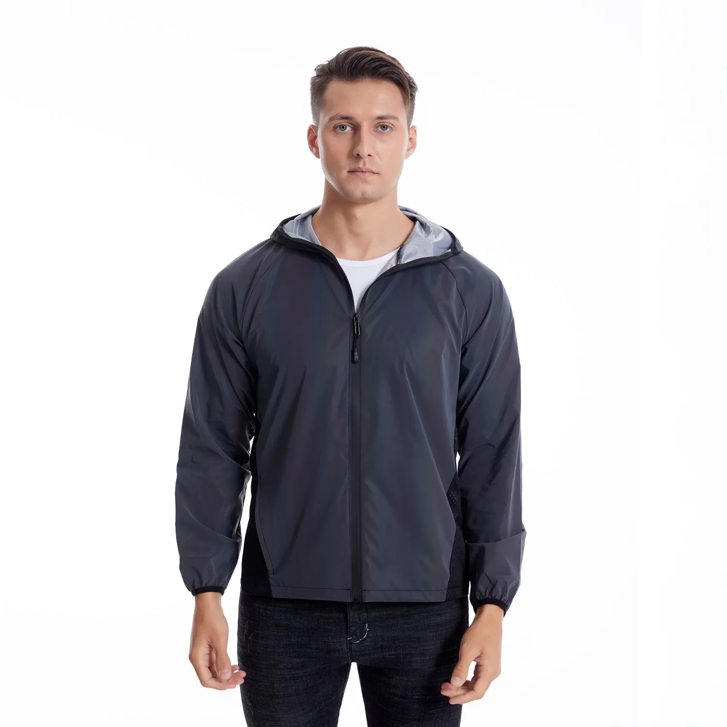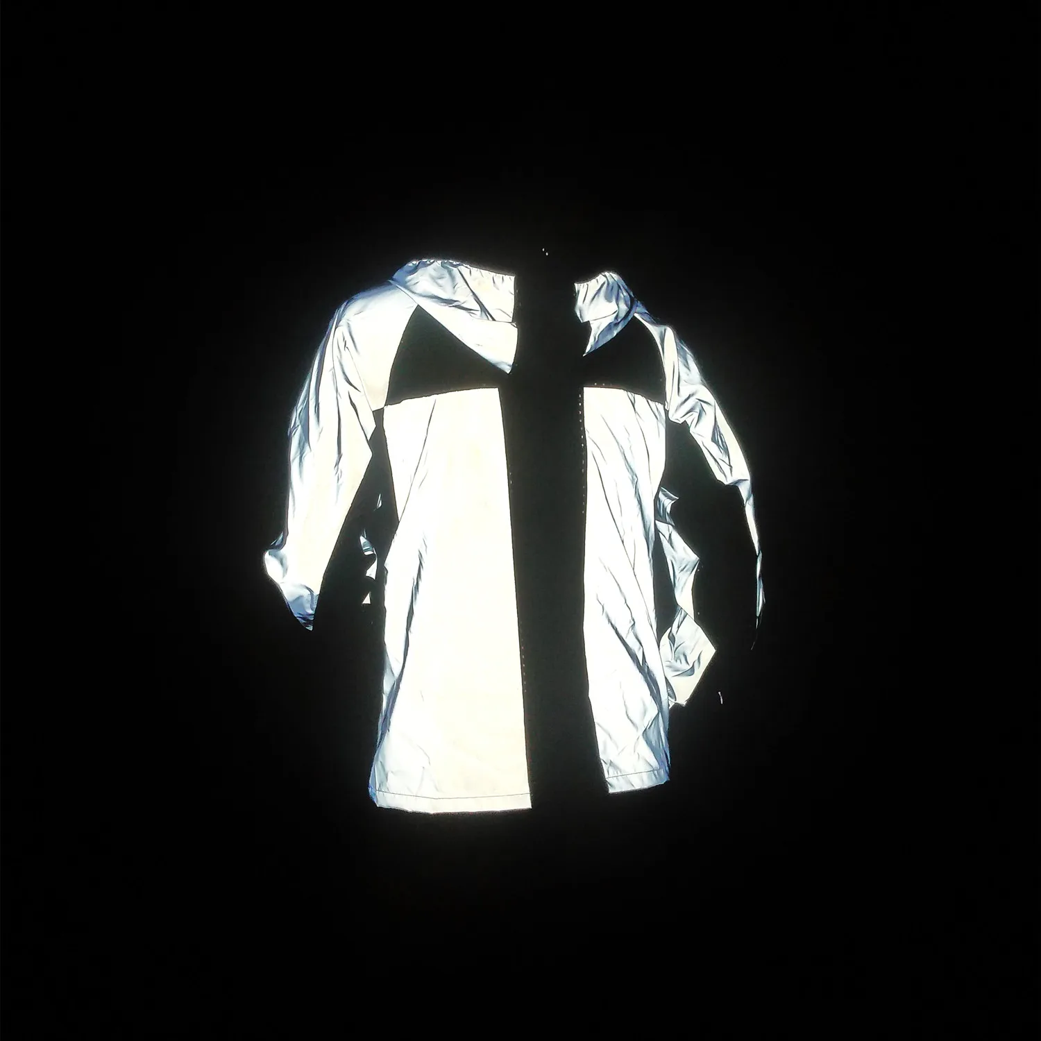 Unisex Holographic Reflective Mesh Patchwork Jacket, Reflective Rave Outerwear Track Zipper Jacket Outfit,