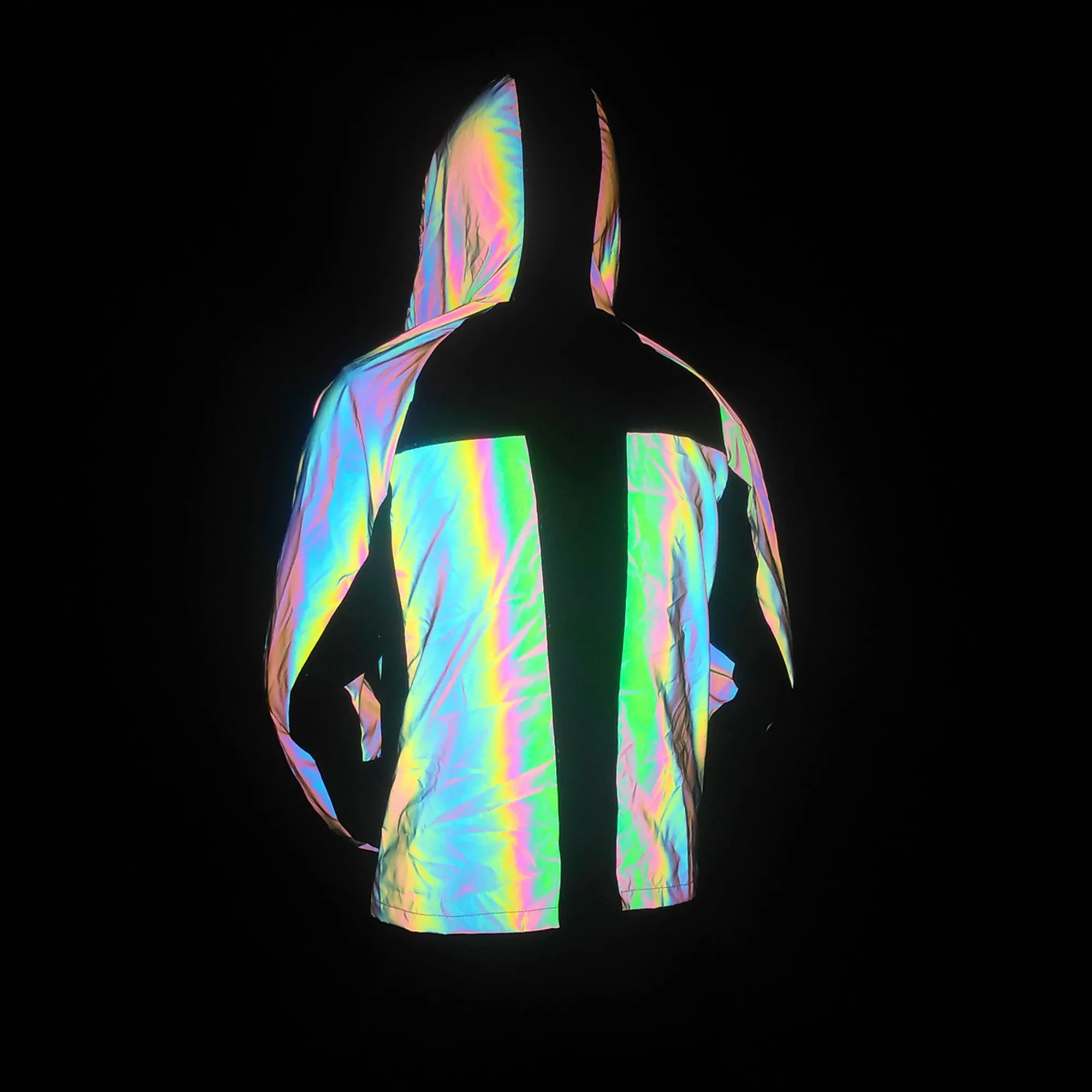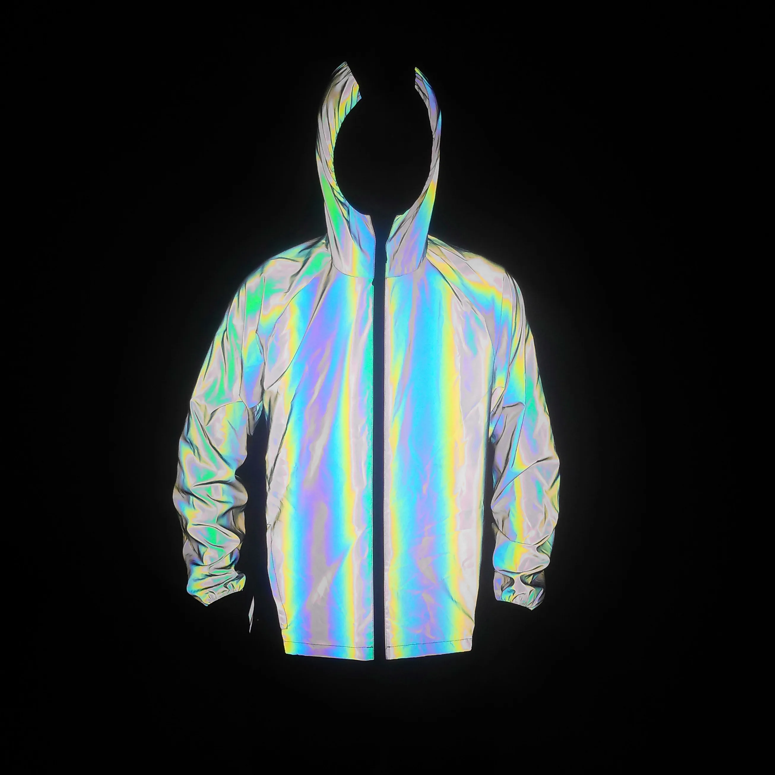 Unisex Holographic Reflective Rainbow Mesh Patchwork Jacket, Reflective Rave Outerwear Track Zipper Jacket Outfit