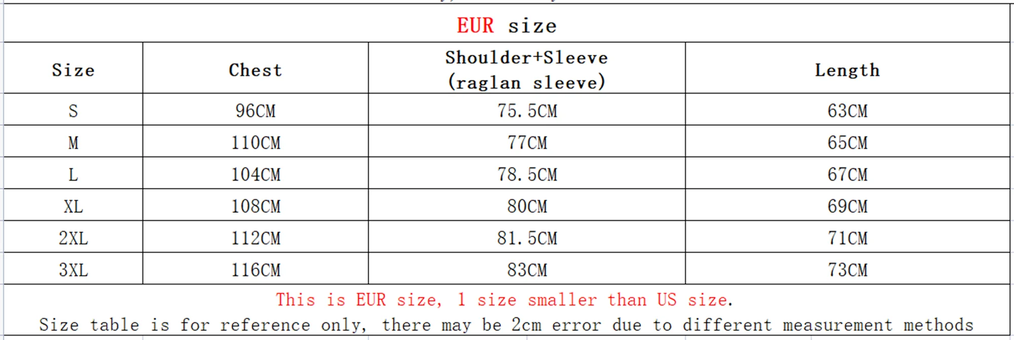 This is European size, 1 size smaller than US size, so make sure you have checked the size chart before purchasing.