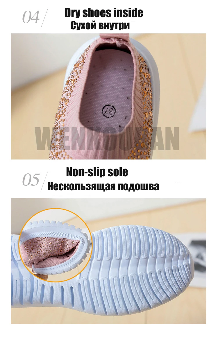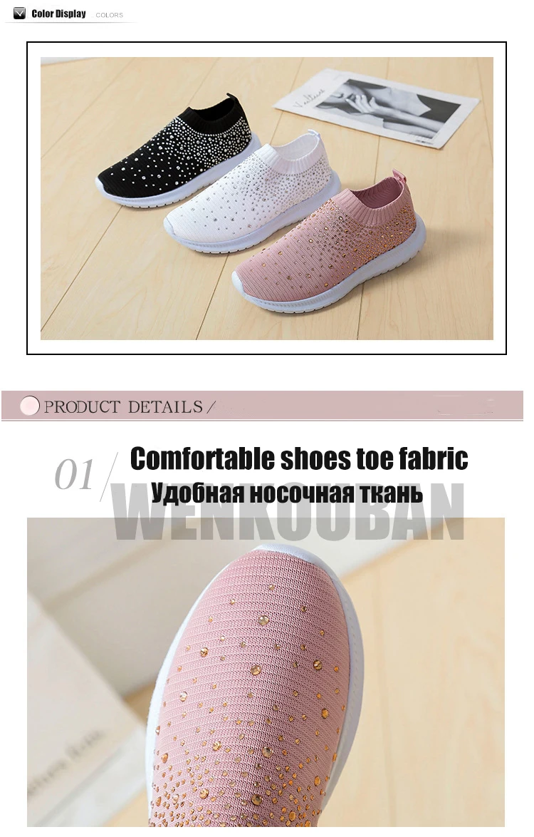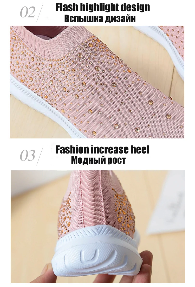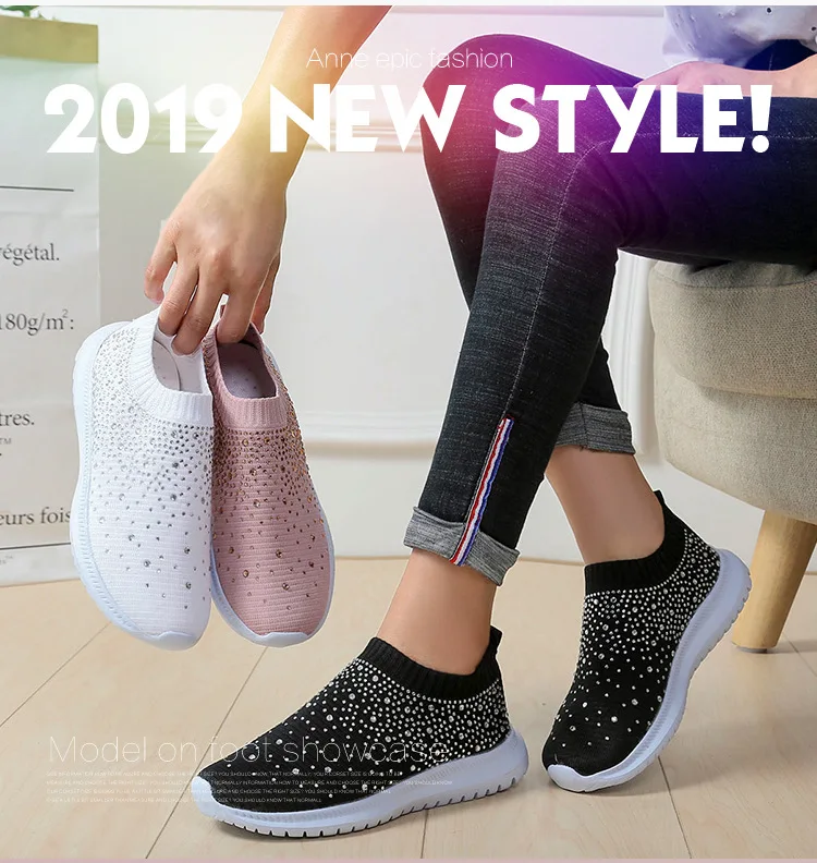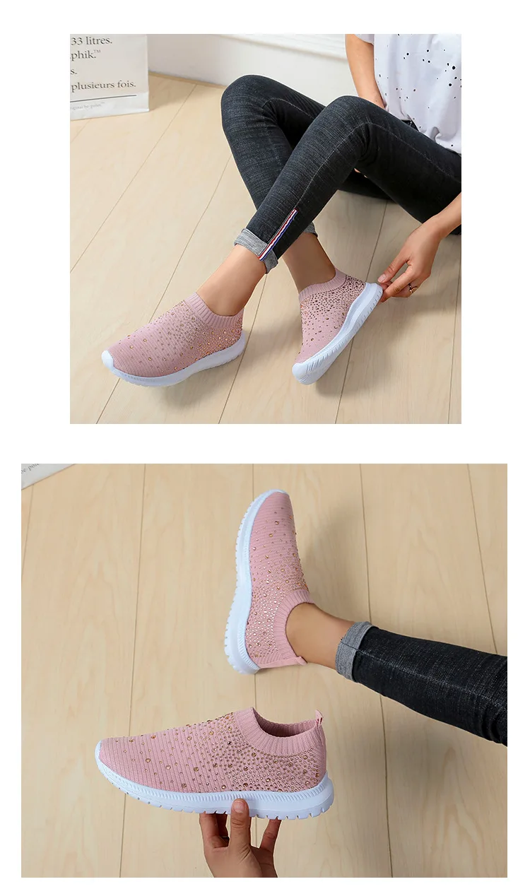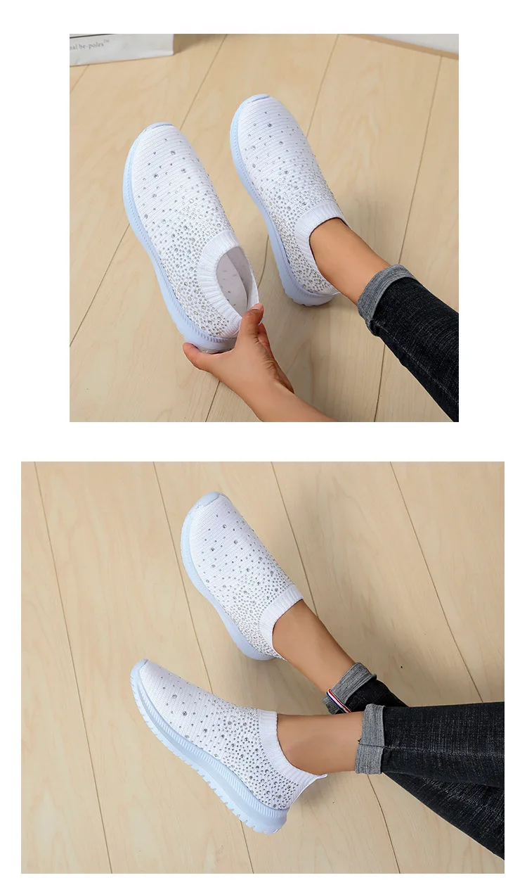 Women Flats Sneakers Crystal Fashion Bling Sneakers Casual Slip On Sock Trainers Summer Women Vulcanize Shoe Zapatillas Mujer
