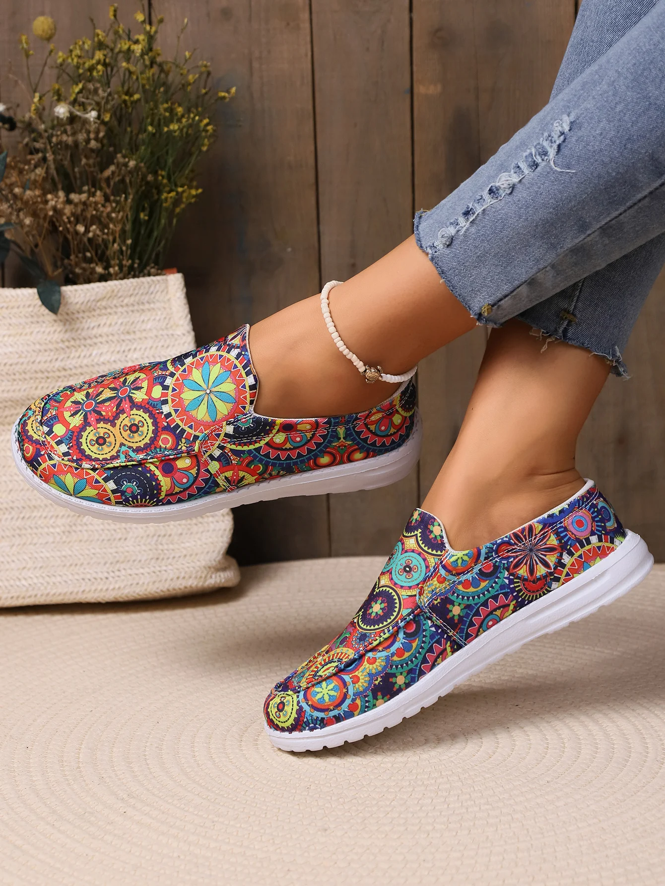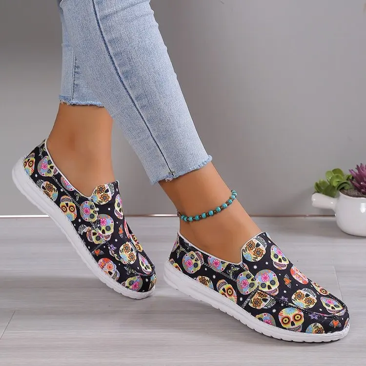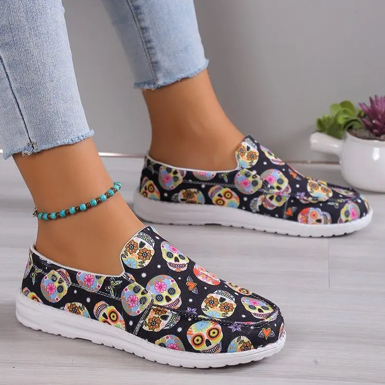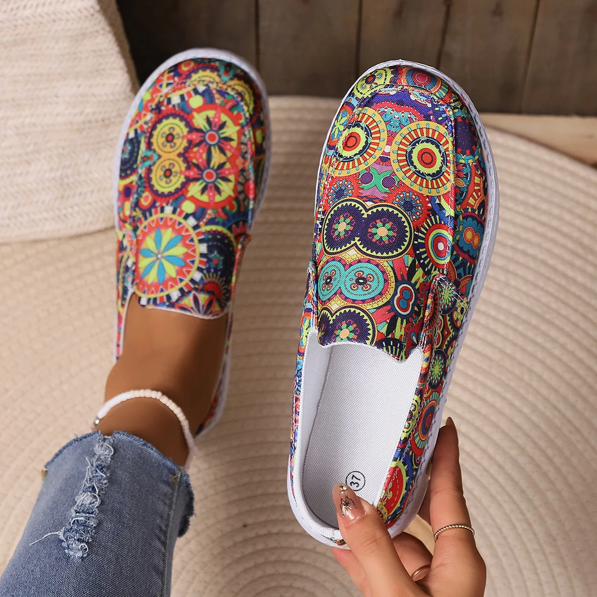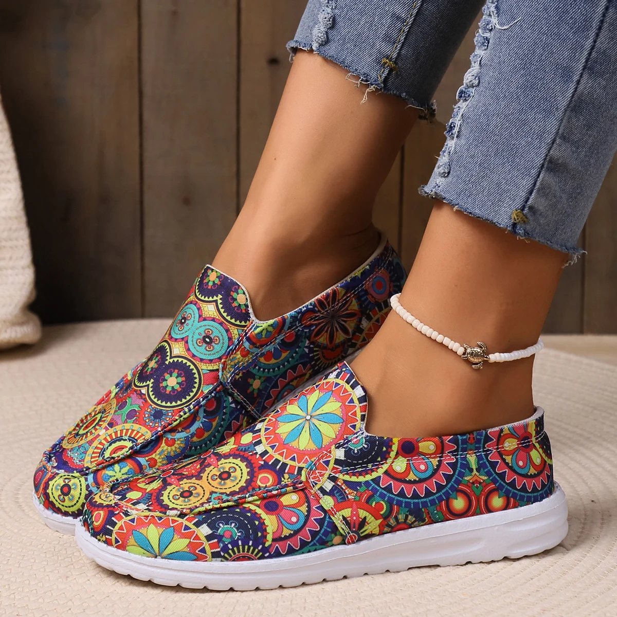 Women's Floral Print Canvas Casual Shoes women Slip-on Round Toe Lightweight Women's Comfy Walking Flat Shoes