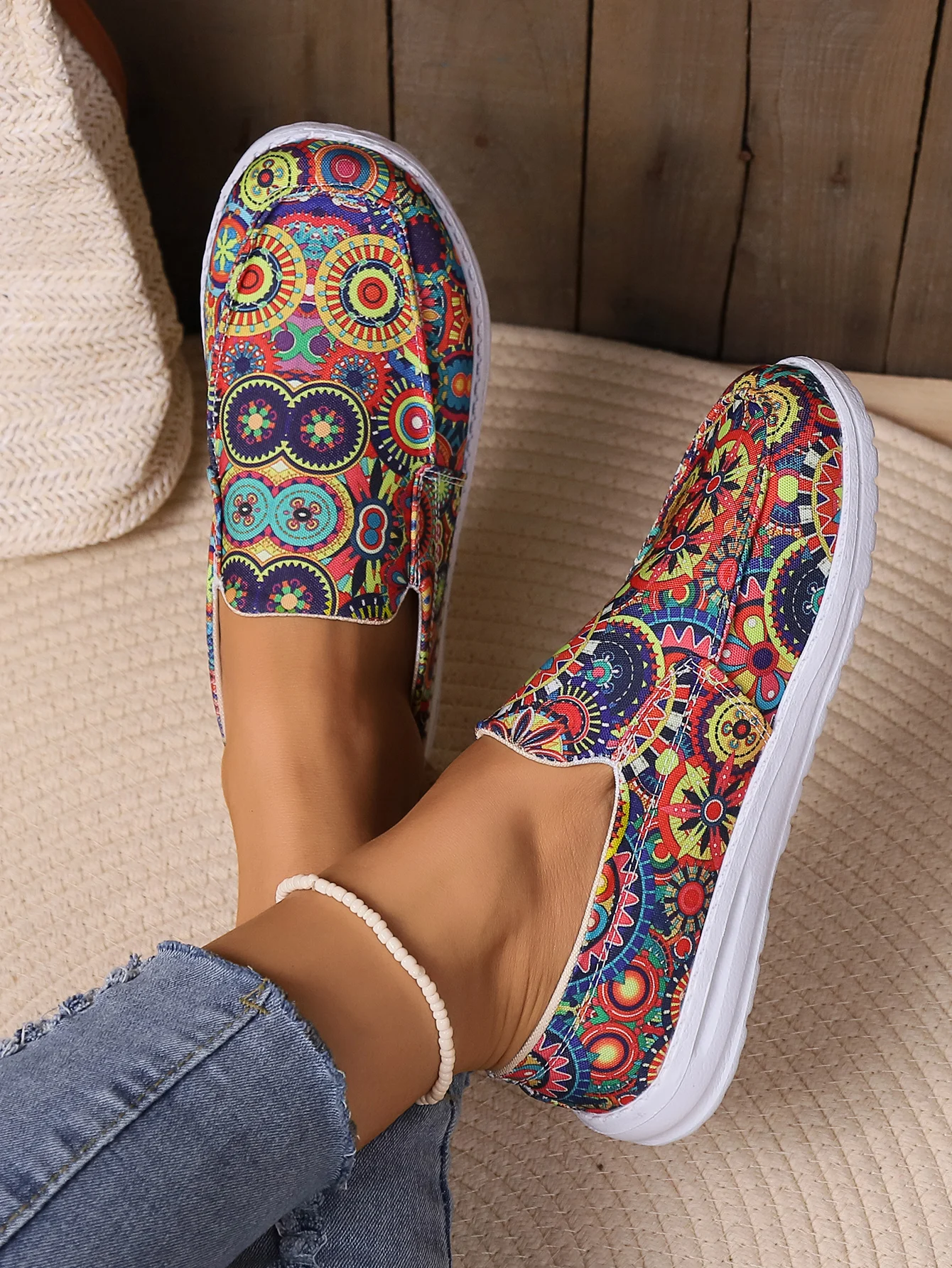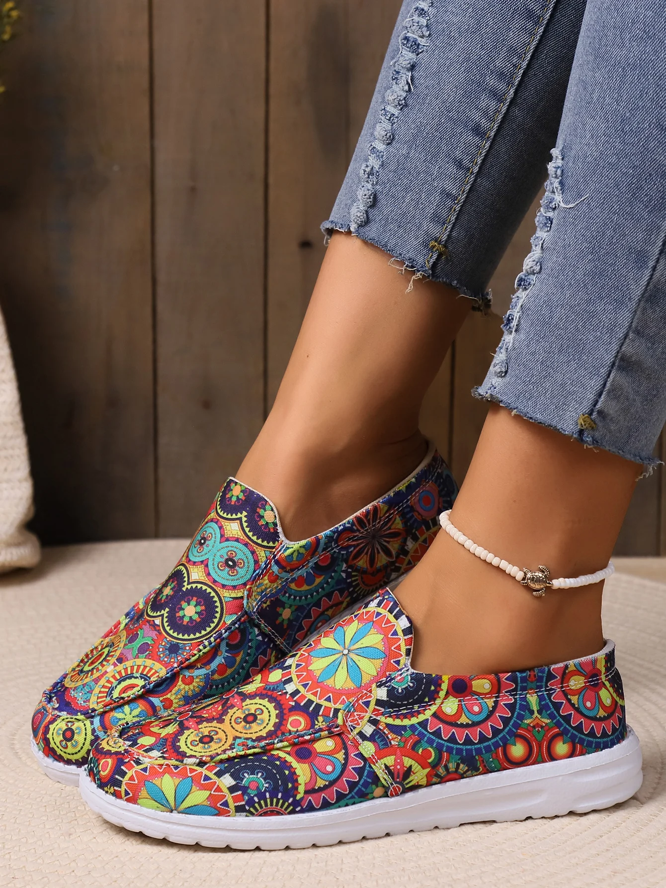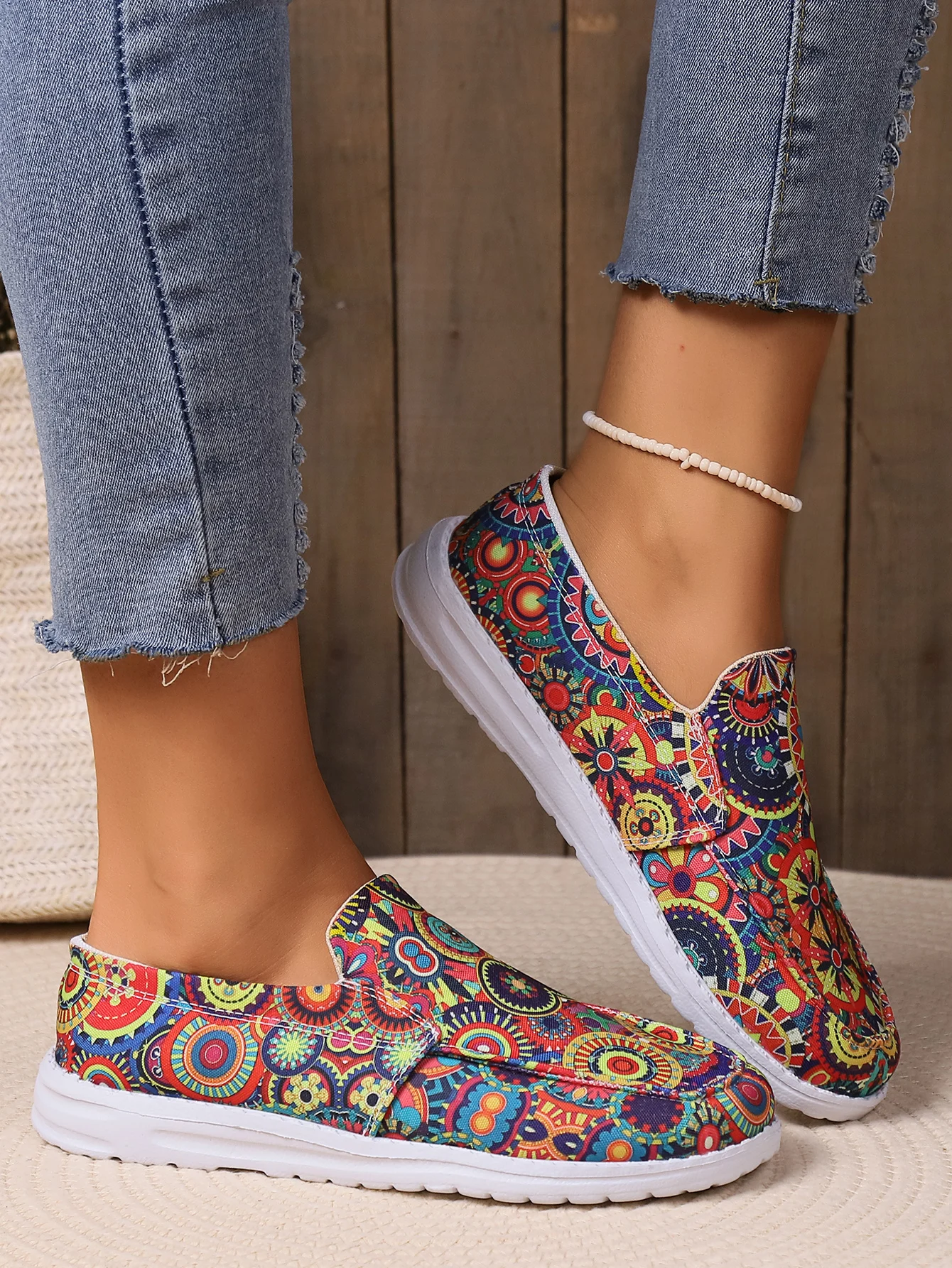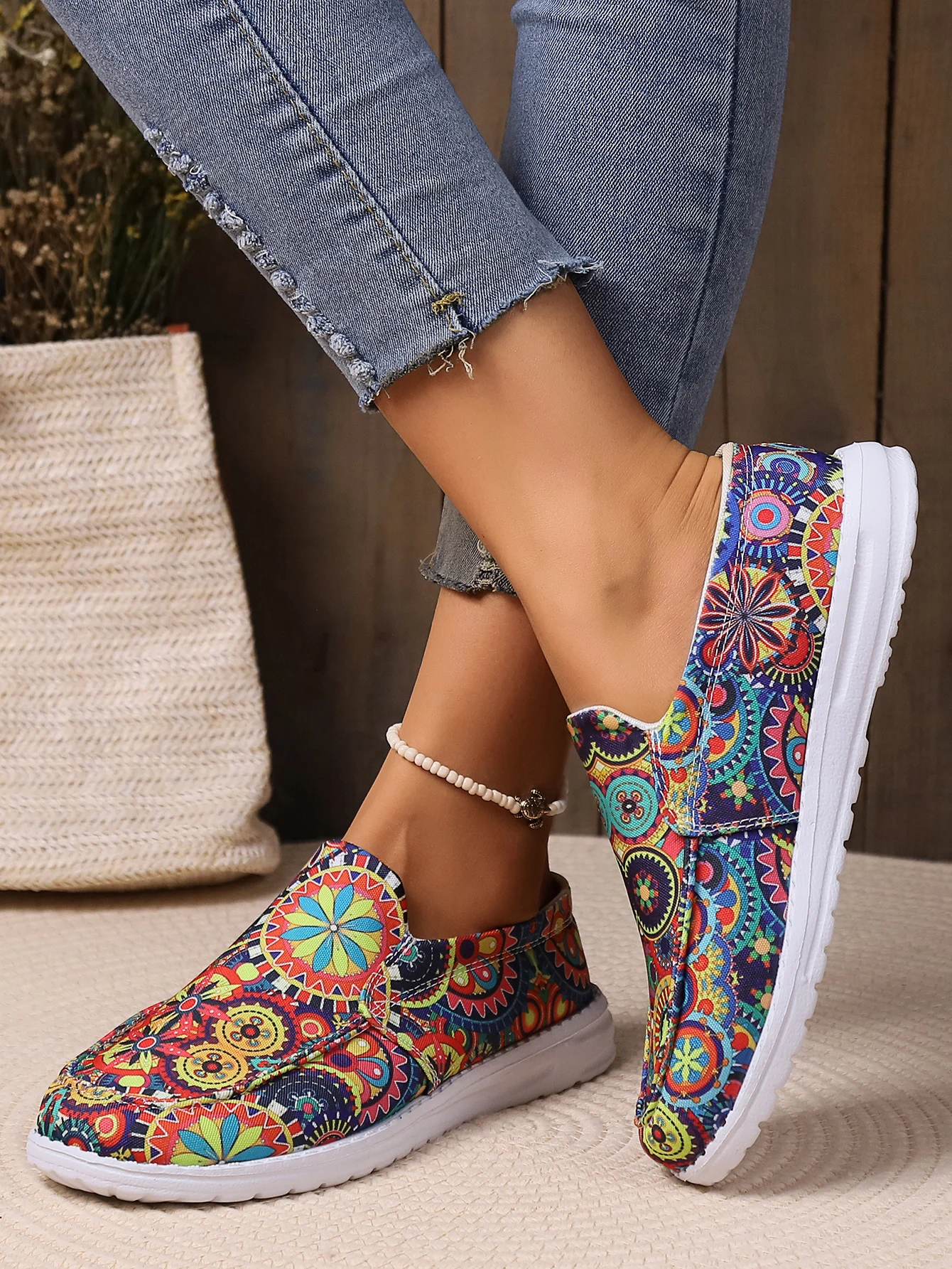 Women's Floral Print Canvas Casual Shoes women Slip-on Round Toe Lightweight Women's Comfy Walking Flat Shoes