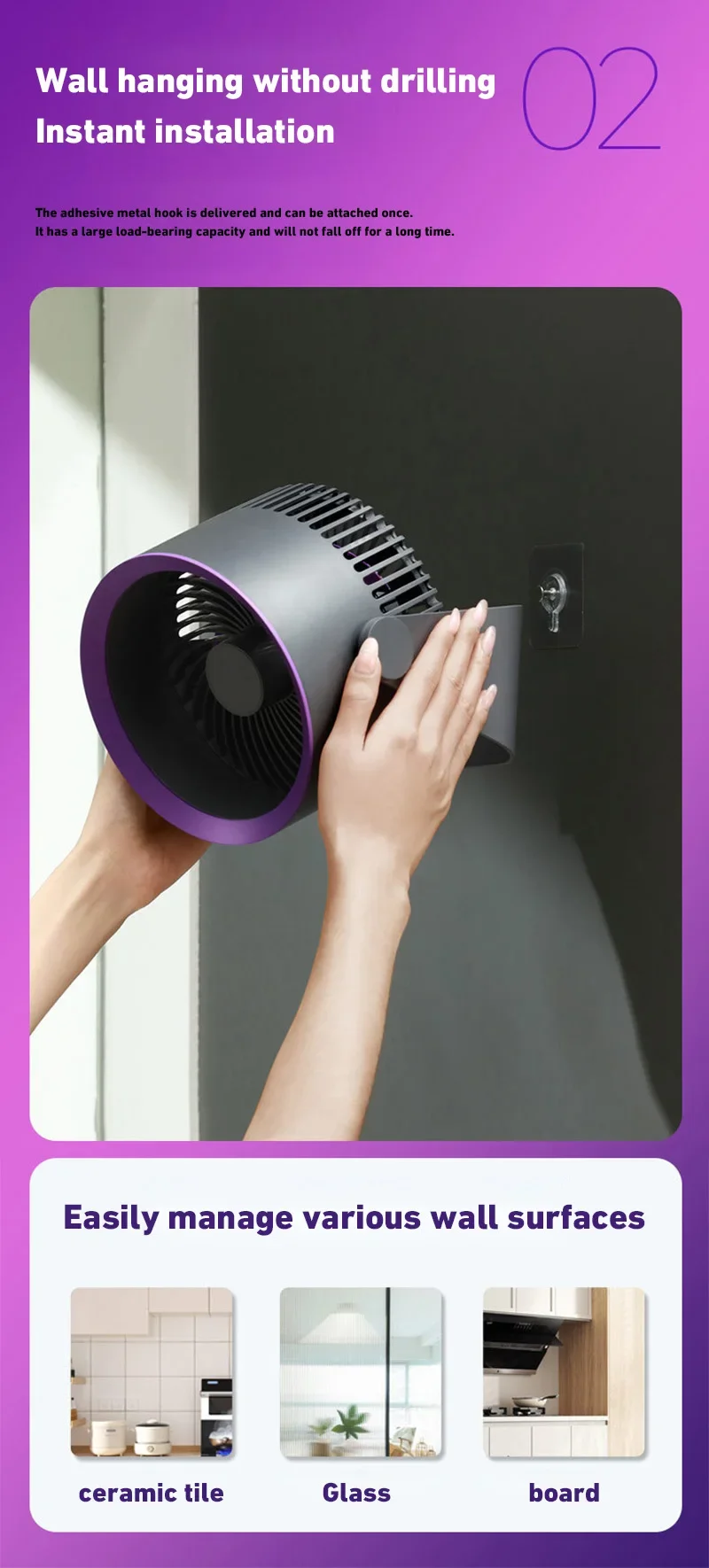 1. Two-in-one use: It can be hung on the wall as a wall fan, or placed on the desktop as a desktop fan. Use it at any time, easy to carry and adjust.