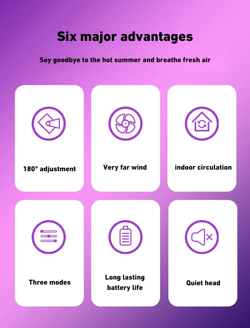 3. Three-speed adjustable wind speed: Our fan has three gears, which can be adjusted with the help of buttons to meet different cooling needs.