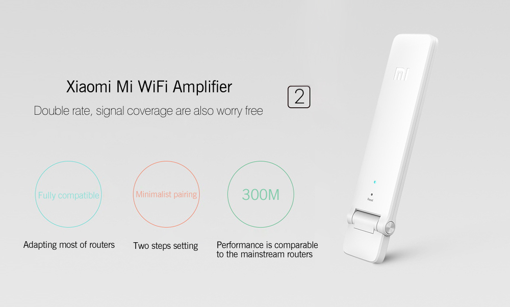 Brand Name: Xiaomi Interface: USB 2.0 Transmission Rate: 300Mbps Antenna: Built-in WiFi Network Frequency: 2.4GHz Chip type: Ralink Network Communiction: 3G OnlyPackage weight: 0.075 kg Product size: 12.00 x 3.00 x 9.00 cm / 4.72 x 1.18 x 3.54 inches Package size: 13.00 x 4.00 x 10.00 cm / 5.12 x 1.57 x 3.94 inchesPacking List: 1 x Original Xiaomi Mi WiFi Amplifier 2, 1 x Chinese Manual